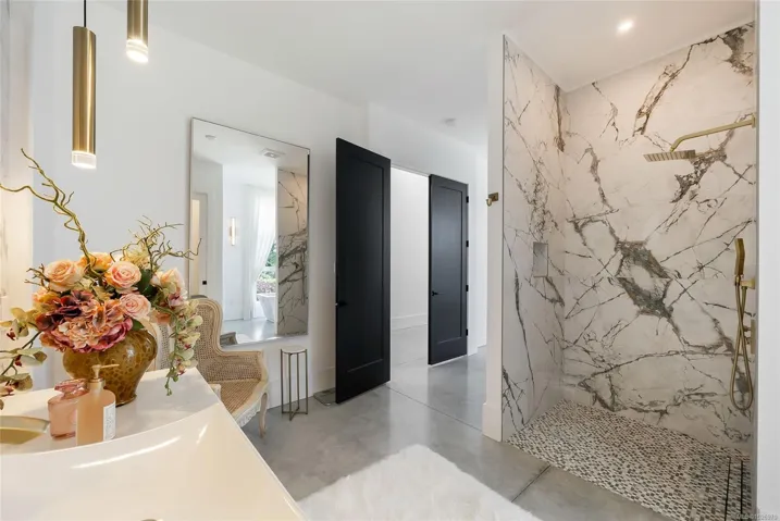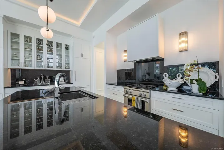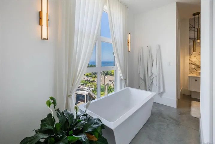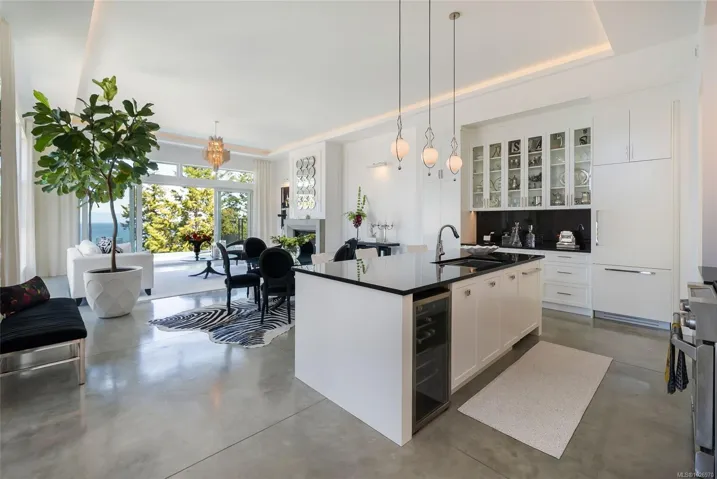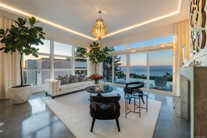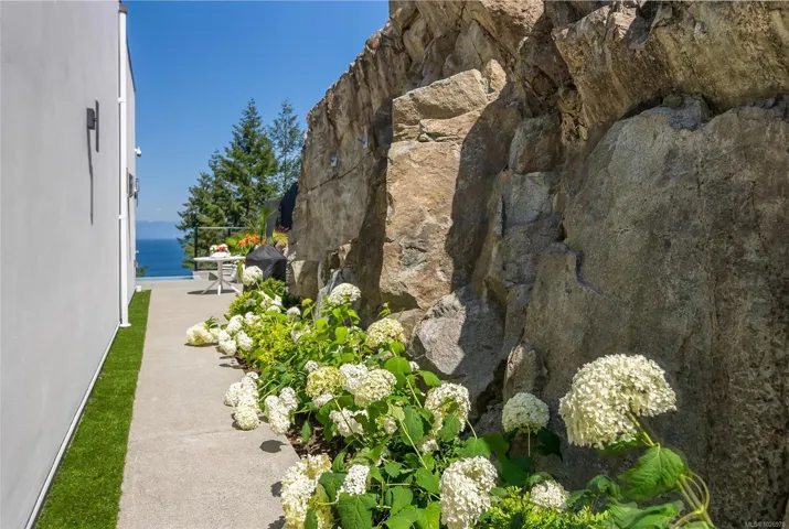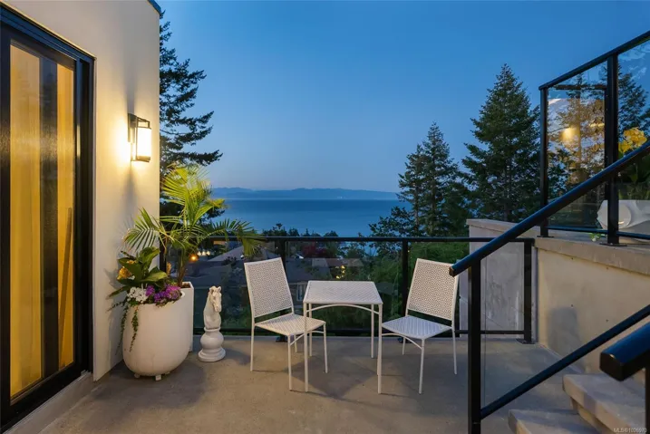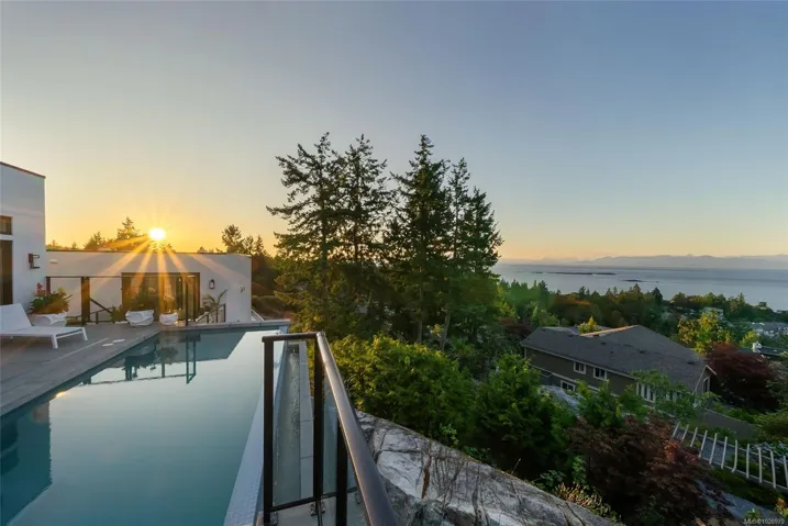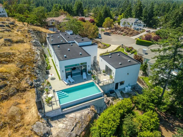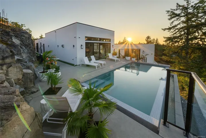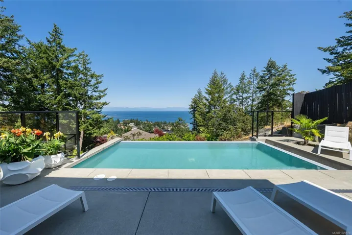 Exquisite Fairwinds Villa with captivating Ocean Views. Once in a lifetime opportunity to own a glorious custom home with elegant designer details in every room. The great room will captivate your imagination, flooded with natural light, soaring ceilings and a dazzling open plan Kitchen (with Butlers pantry), all flowing out onto a generous patio for al fresco dining with an infinity pool framing the magnificent Ocean vistas. Relax in your luxurious Primary Suite with glamorous walk in closet and blissful ensuite. Generous guest accommodations, both in the main house and in the separate studio allow for gathering of family and friends. Art niches and inspiring light fixtures allow you to create artistic scenes throughout your home. This unique architectural home nestled into low maintenance landscaping will allow you to live Your Vancouver Island Dream Today.