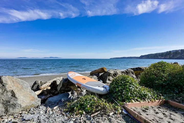 Experience waterfront serenity in this charming 1,143 sq. ft. retreat on Cordova Bay. Perfectly perched on an 8,450 sq. ft. lot, this 2-bed, 2-bath home offers panoramic views of the Straits of Juan de Fuca & Mt. Baker through expansive main-floor windows. Originally built in 1960 and thoughtfully renovated in 2005, the bright, open-concept layout features a spacious walk-in closet & a finished ground-level unit with large windows. Outside, a large backyard leads directly to the shore for kayaking & fishing. While the structure is in good condition, the wraparound deck and stairs await your finishing touch to fully restore this entertainer’s dream. Complete with two storage sheds and a private two car parking pad at street level, this property is a rare find for downsizers, vacationers, or those looking to build their coastal dream home. Wake up to tranquil waters & end your days with breathtaking sunsets in this private sanctuary. Your peaceful life at the water’s edge starts here.