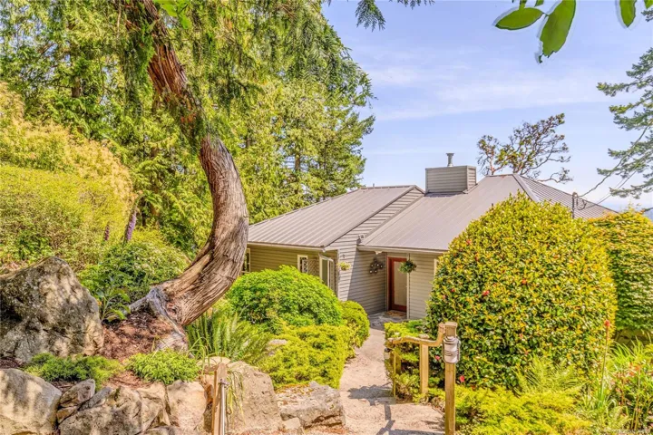 The open-plan design feels connected, comfortable, and full of light, with large windows framing the views from almost every room.It’s a home that immediately draws you in—feeling like stepping into a picture.Wood siding blends into the natural setting, with a heat pump and propane stove for comfort.A spacious deck and hot tub are perfectly positioned to enjoy the ever-changing outlook, from sunrise over Mount Baker, with seals, eagles, and marine life part of the daily scene. Peaceful and private, the property is sheltered while enjoying wide ocean views. Landscaped grounds feature layered gardens,Japanese elements,a labyrinth,plus studio,teahouse,and workshop spaces offering flexibility.Video & virtual tour are available.