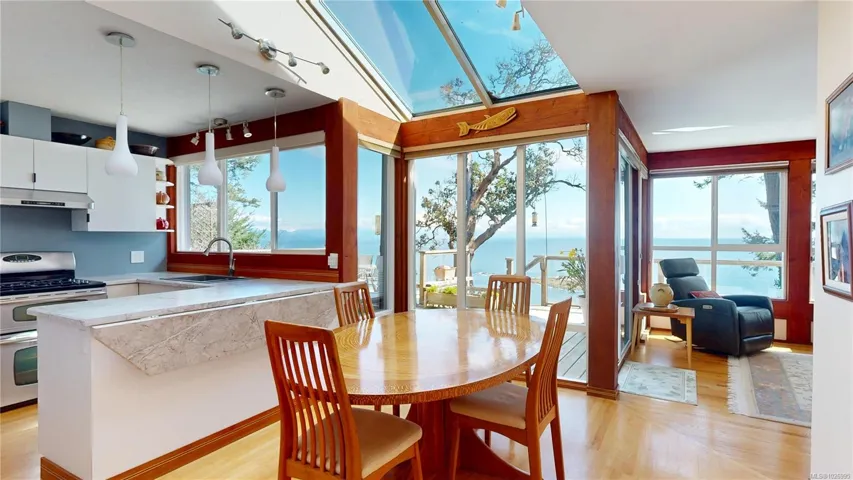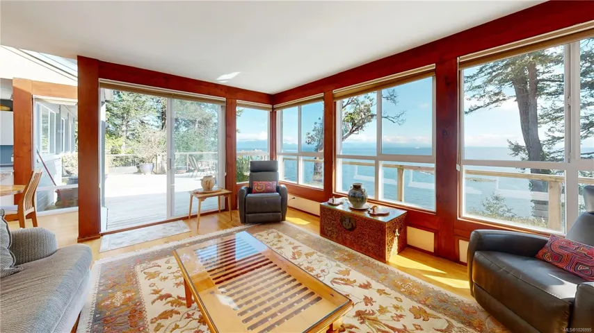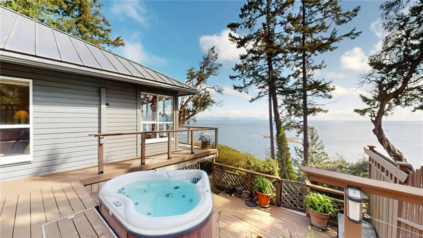Set on 1.16 acres in a very private waterfront setting, this architect-designed 3-bedroom, 3-bathroom home takes full advantage of its incredible position, with sweeping views across the Salish Sea to the snow-covered mountains beyond.