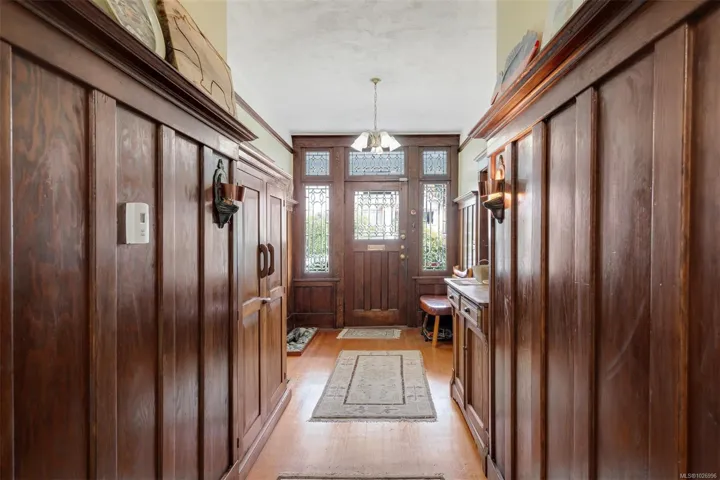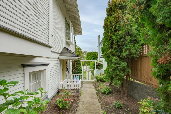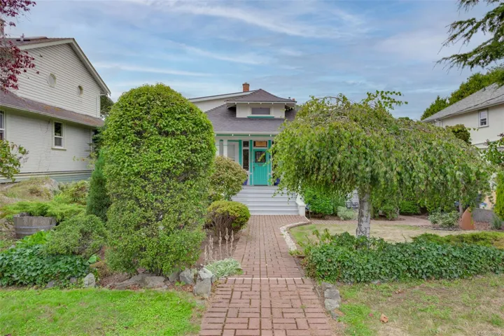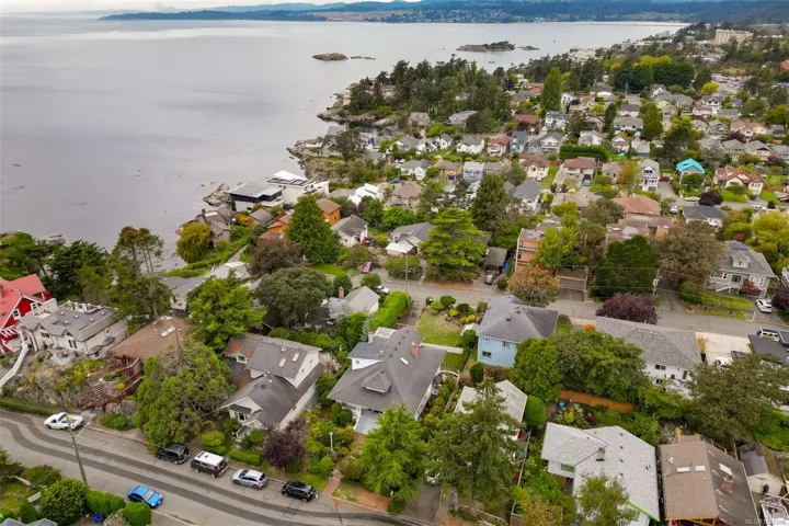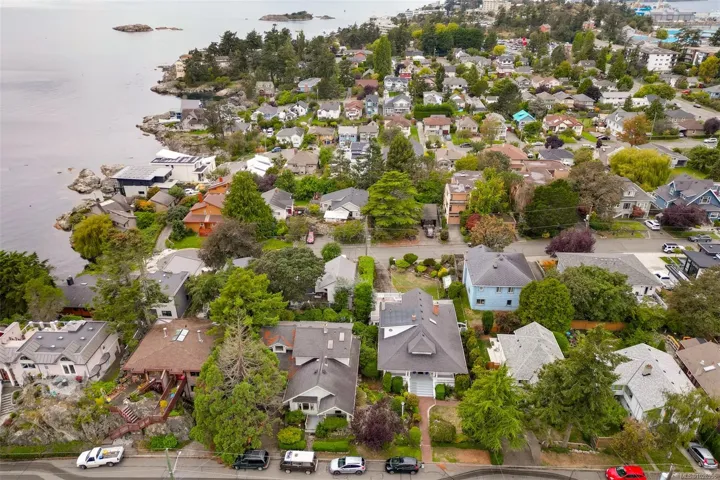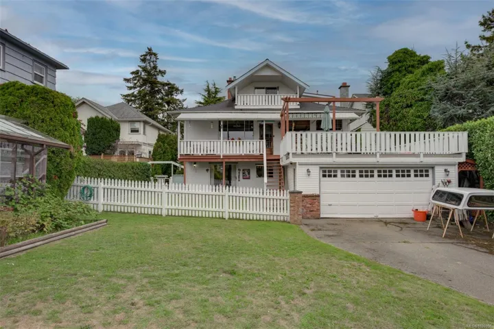 Welcome to this charming 1910 character home, perfectly perched on a rare double lot with two legal titles. This 4-bedroom, 3-bathroom gem radiates warmth with original woodwork and classic details, while the upper floor offers lovely south and west ocean glimpses. The property features a fully self-contained 1-bedroom suite, ideal for a mortgage helper or multi-generational living. Located in the heart of a vibrant community, you are steps away from Esquimalt Village shops and services. Embrace an active lifestyle with the ocean just a stone’s throw away. Enjoy scenic strolls through Saxe Point Park or explore the incredible walkability of this seaside neighborhood. Whether you value the historic charm, the spacious gardens, or the future potential of the two legal lots, this home is a rare find in a prime location.