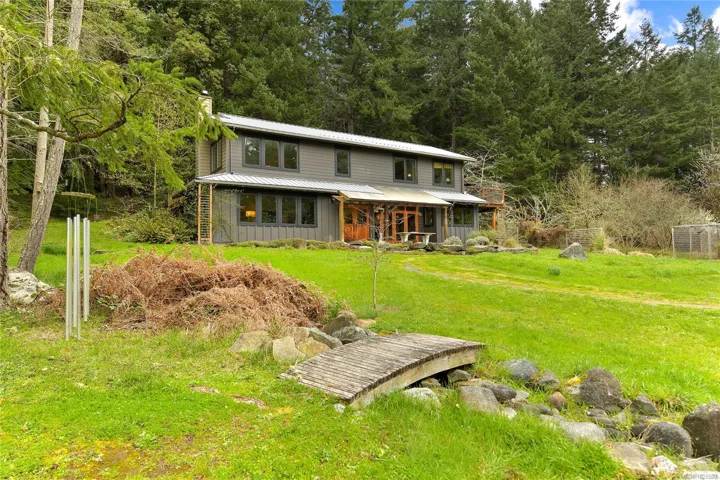 Embrace the serenity of this spectacular 10-acre property, offering unmatched privacy and peace. Amidst beautiful landscapes, the property features a pond and the most amazing arbutus grove, endless gardens and fruit trees, perfect for nature lovers. Designed for functional comfort and style, the main residence has a whopping 3334 sqft of executive living space with 2 beds, 2 baths, an office and an extensive craft room and much more. A delightful 928 sqft guest cottage provides an inviting space for visitors, while the two-storey double car garage includes a spacious workshop for all your projects. With 5 acres fully fenced and 5 acres of untouched forest, this property promises an idyllic escape from the hustle and bustle of everyday life. This property has a plethora of opportunity and is a must see! Come Feel the Magic!