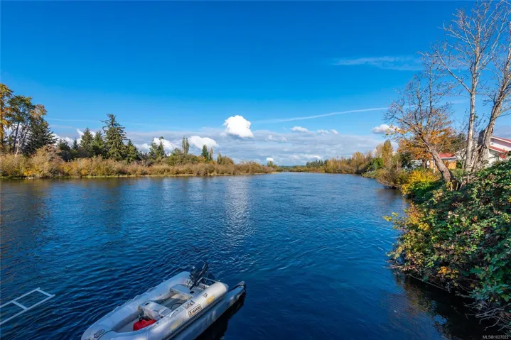 Riverfront home with private dock! Opportunity awaits you for this unique property, featuring one of the few private moorage opportunities left in Campbell River. Enjoy world renowned fishing right from your dock, year round wildlife watching, and the beautiful ever changing scenery river life has to offer, all from a private no through road. Just steps from downtown amenities, this 3 bed plus den, 1.5 bath split level home spans 3 floors, featuring a beautiful backyard inground pool for the warmer months. Step inside & find views from every room on the main floor, which contains the kitchen, living, & dining spaces. Upstairs there is 2 cozy bedrooms, 4-piece bath, & den with deck & views of the backyard. Downstairs features a warm woodstove & rec room, plus another 2-piece bath. Outside there is a large double carport with extra storage, and a fully fenced yard. This is a perfect property for those looking to entertain and make the most of what Campbell Riverfront living has to offer.