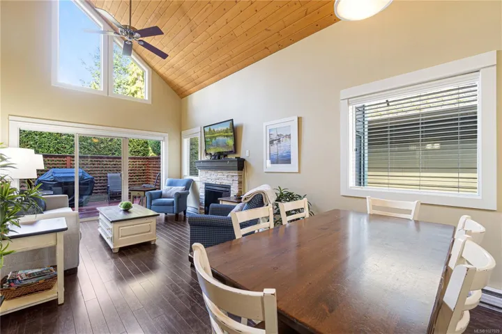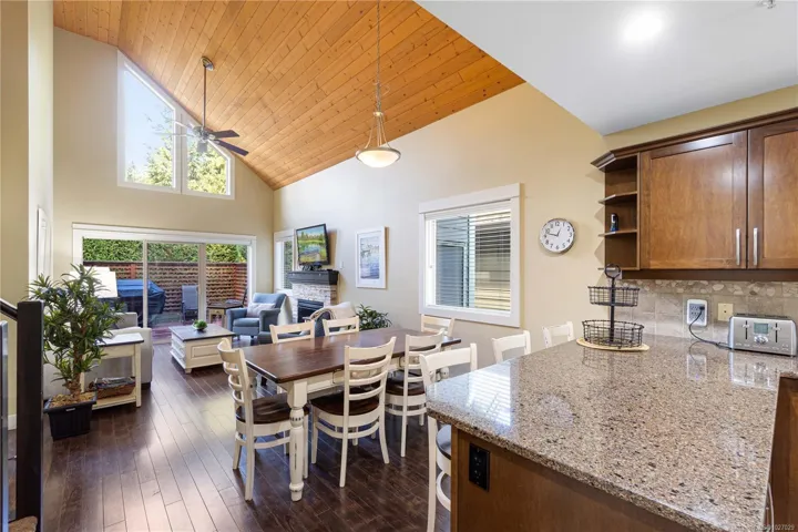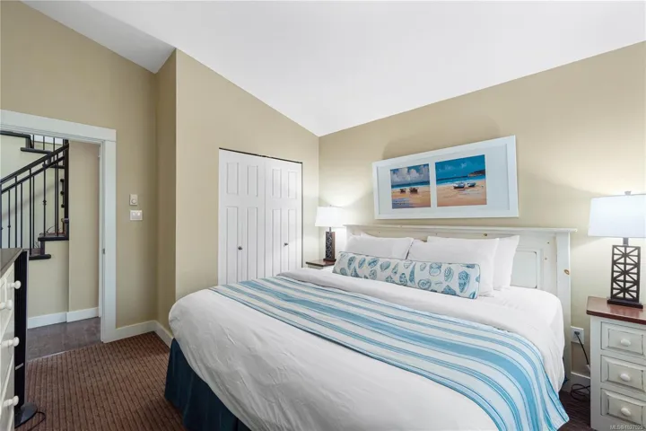 Rare, private Cypress cottage in the newer phase of Oceanside Village Resort, showcasing custom upgrades and a designer furniture package. This stylish, turnkey retreat offers vaulted ceilings, hardwood floors, heated tile floors in both bathrooms and kitchen, and a well-appointed kitchen with quartz countertops, rich wood cabinetry, and heated floors for added comfort. The enclosed loft adds a third bedroom with its own ensuite. Two bedrooms come equipped with TVs, along with a main living area TV for enjoyable entertainment. Located in a premium, super-private spot with no units behind and an attached storage shed. Hot water tank replaced in 2024. Includes everything needed for a seamless vacation home experience. Currently self-managed through Airbnb with the option for resort management. Ideally close to the pool, hot tub, fitness room, and minutes from Rathtrevor Beach. Excellent investment or getaway – one of the best in Oceanside Village Resort, with strong rental appeal.