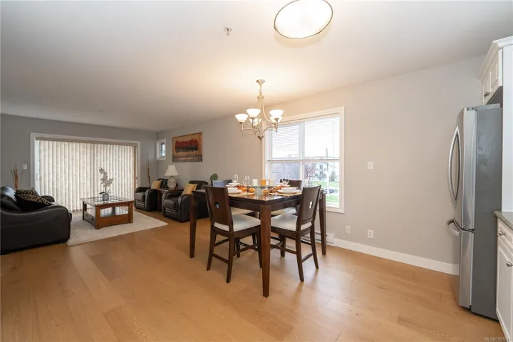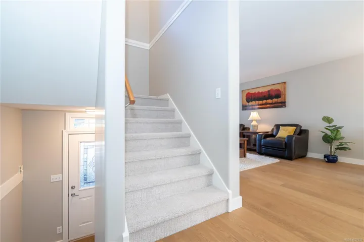 Lovely bright 3 bedroom, 2 bath home. This end unit home has been renovated and is in excellent shape. Upgrades include engineered hardwood floor throughout living area with new carpet in the brs. This home has been fully repainted inside and the whole complex had the exterior repainted. The Sellers are putting a new roof on the complex. The main floor has an open floorplan with a deck off the front and a 3 pc bath. Spacious kitchen has brand new LG S/S appliances including 3 door fridge and ceramic top stove. Upstairs has 2 good size brs with a California ensuite bath and laundry with new washer and dryer. The lower level has the third br that enjoys access to the rear patio along with a good size garage. There is also a nice lawn and patio area that is common area. Strata fee is only $368.75 and the building is in excellent shape. Close to Red Barn Market, Esquimalt library and rec centre and Saxe Point Pub and many parks. Available for immediate possession and priced to sell.