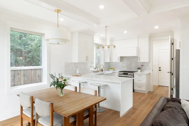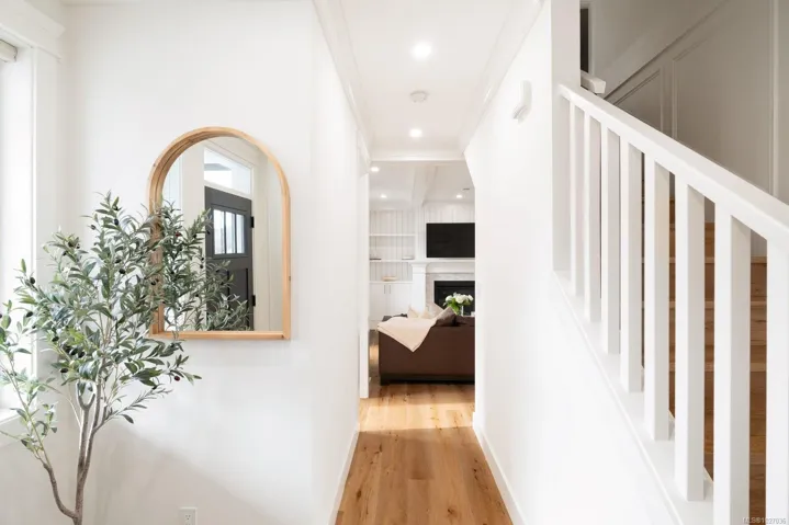Welcome home to this stunning 2022 custom-built residence at 9356 East Saanich Road. Located at the very end of a quiet cul-de-sac of only 4 properties, its perfectly situated SW and private exposure allows natural light to flood into the home creating a warm ambiance throughout the day. Thoughtfully designed, this 4 bed+den/4 bath home offers almost 2,900 sq/ft of refined living space, complemented by a large recreation/bonus room(garage). Every detail has been carefully curated, showcasing custom millwork, elegant picture rail moldings, coffered ceilings and timeless architectural elements that blend seamlessly with modern accents. Legal 630 sq/ft, 1bed/1 bath, suite above the garage with a separate meter.