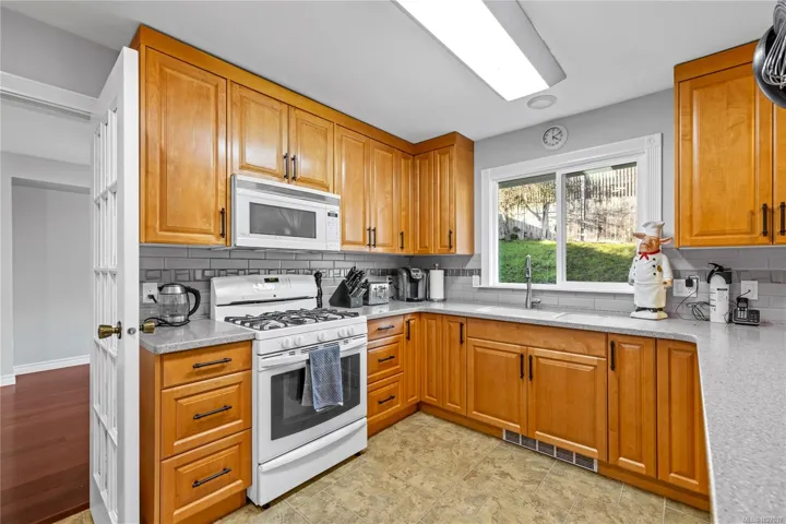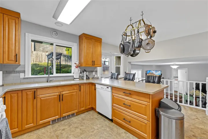 Set on a quiet cul-de-sac just steps from beach access and the trails of Linley Valley, this well-appointed home blends lifestyle and comfort. Ocean views greet you from the sunny south-facing front patio and continue from two of the upstairs bedrooms. Inside, the main level offers a spacious living room with fireplace, a dining room overlooking the backyard, and an updated kitchen with four appliances, abundant cabinetry, and an eating bar. The adjoining family room with gas fireplace creates the perfect everyday gathering space, while laundry and a two-piece bath complete the lower level. Upstairs features three bedrooms, including a generous primary with walk-in closet and three-piece ensuite, plus a five-piece main bath with dual sinks. Additional features include hardwood flooring, a large back deck, garage with workshop, and plenty of parking. For more info see the 3D tour, floor plan and video. All data and measurements are approximate and must be verified if fundamental.