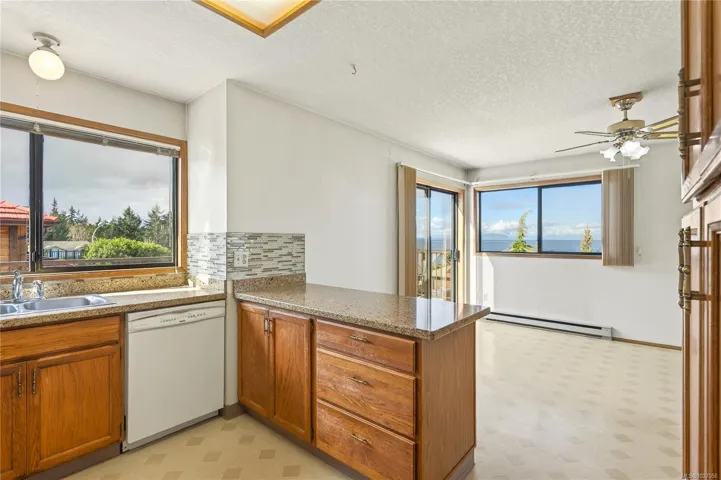Set on a quiet cul-de-sac in a highly desirable North Nanaimo neighbourhood, this lovingly maintained semi-custom home has been cherished by the same family for over 35 years. Vaulted ceilings take centre stage while expansive windows capture the beautiful ocean and mountain views, filling the 2,591 sqft, 4-bed, 3-bath home with natural light. Watch cruise ships, submarines, navy vessels, and passing pods of orcas from the comfort of your living room. The functional family layout includes generous living spaces and a kitchen with granite counters, while the flexible lower level is ideal for teens or guests. Outdoor living shines with a large back patio, updated vinyl deck (2023), and a beautifully landscaped, fully irrigated 0.23-acre yard, while a double garage includes a storage room. A welcoming home in a quiet, established neighbourhood where comfort, views, and community come together, ready for its next chapter. Verify data and measurements if important.