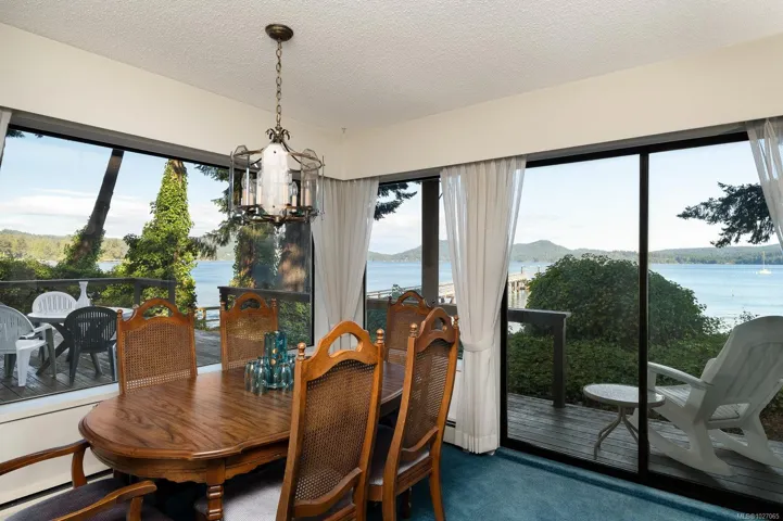 Tucked in the trees on a 0.86 acre waterfront lot, this retreat offers an unparalleled connection to nature with breathtaking ocean views & direct beach access. The seclusion is undeniable w/ winding paths, a canopy of trees & outdoor spaces that feel like your own sanctuary. Oversized windows flood the 2-storey layout w/ natural light, framing water views from nearly every angle. The sunken living room w/ wood-burning fireplace flows into the formal dining, open kitchen & built-in breakfast nook. Bay window benches are perfect for curling up with a book & taking in the seascape. Step onto the expansive deck for family dining or morning coffee surrounded by nature. Thoughtfully designed w/ dual staircases, the layout suits family or guests. The spacious primary suite includes a huge ensuite, walk-in closet & its own deck access overlooking the ocean. Coastal perks include a new dock w/ boat moorage, detached garage, charming cottage for guests or hobbies, large shed & generous parking.