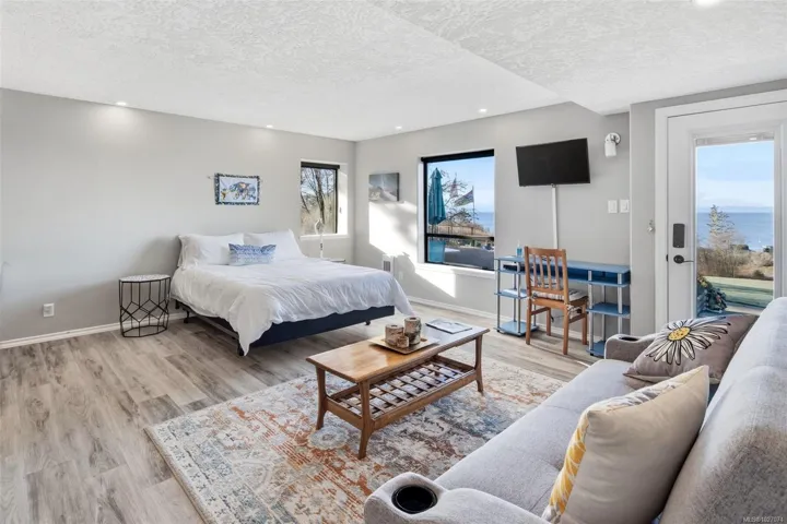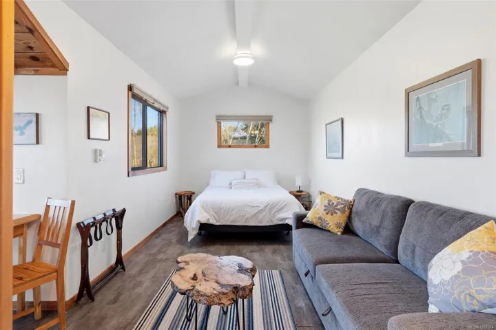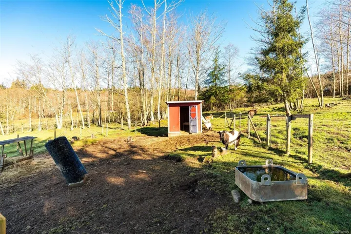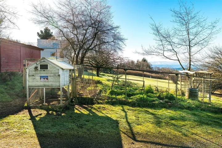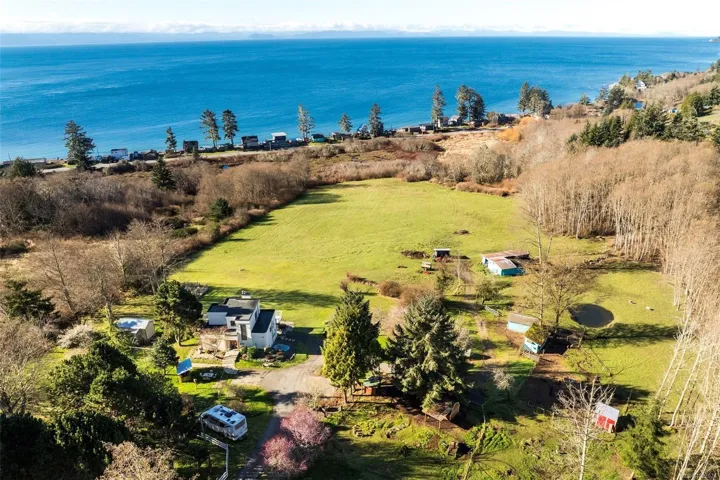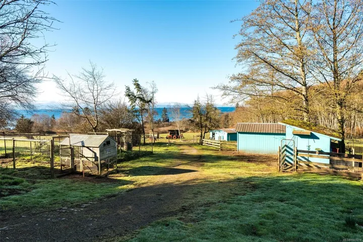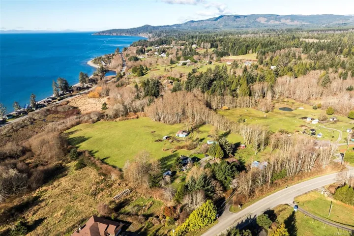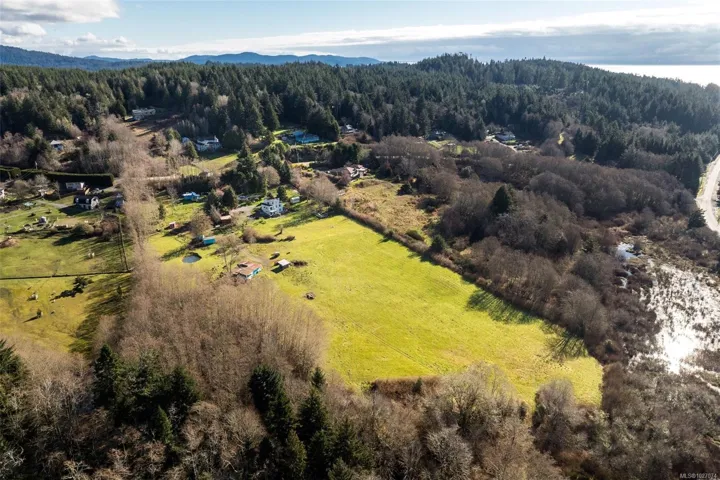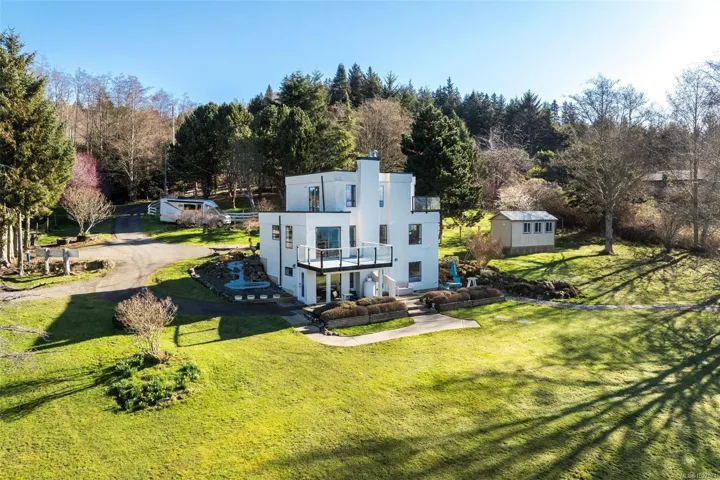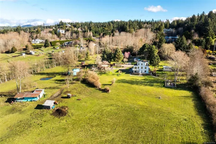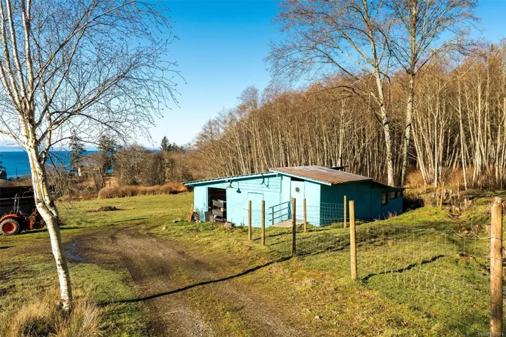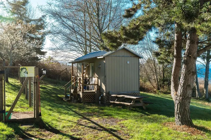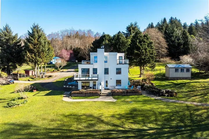 Wide open spaces, ocean views, brilliant sunsets and spectacular starlit nights – 4537 Otter Point has it all. A unique, masterfully crafted property: 10 acres of gently-sloping southwest facing land affords views over Gordon’s Beach, the Strait of Juan de Fuca, and the Olympic Mountains. A 1991-built custom art-deco revival home is the centrepiece: 2300 sq ft on three levels: two self-contained vacation units below, two bedrooms on the main, and a stunning master suite upstairs, with rooftop decks, walk in closet, and luxurious ensuite bath, including a door to a private rooftop outdoor shower. A charming century cottage and efficient tiny home offer additional accommodation or revenue potential. Previously operated as a successful B&B and hobby farm, there are also numerous outbuildings: barn, chicken coop, ocean-view fire pit, pump house, and more. Current farm-tax status for lower assessment and taxes. Note re rooms: lower, main, second = house; third = cottage; other=tiny house.
