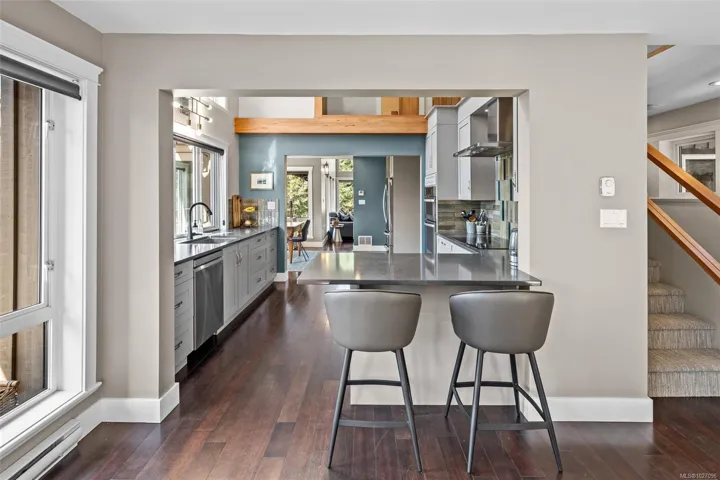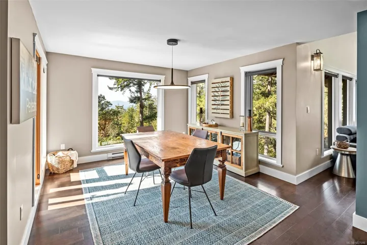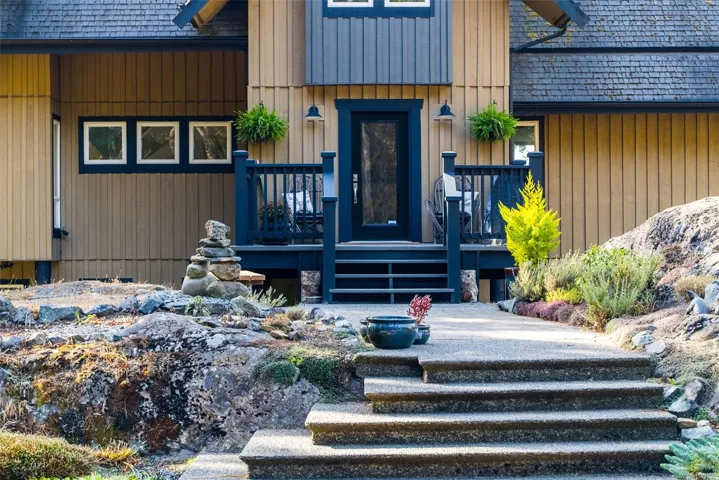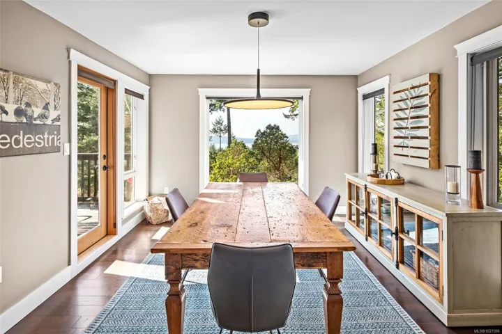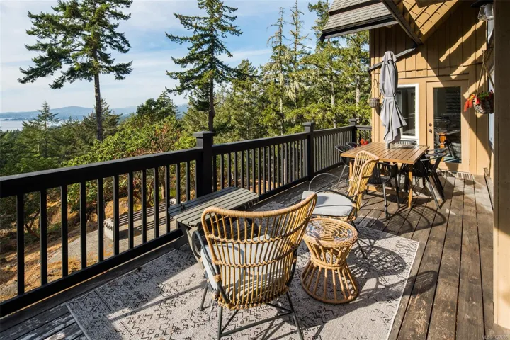 Spectacular West Coast Living-On Top of The Mountain – With an Incredible View! This stunning executive home offers a very sophisticated & contemporary design with the highest standard of craftsmanship throughout – the most serene setting, stunning ocean & mountain views beyond. Quality finishing’s such as; quartz, clear edge grain fir, hardwoods, slate & glass. Vaulted ceilings & windows provide amazing perspectives of the surrounding tree-lines & ocean views. The kitchen is a chefs dream come true. The patio, upper deck & lower terrace connect the outside with the interior of the home perfectly. The lower level walkout could be easily suited. Great Separate Double Car Garage. Property is close to the Galloping Goose Trail which provides endless biking & hiking. Close proximity to shopping & conveniences of Western Communities. Set on 3.64 LCP exclusive use acres, this superb 3 bed & 4 bath home is your own private paradise. Very private & serene