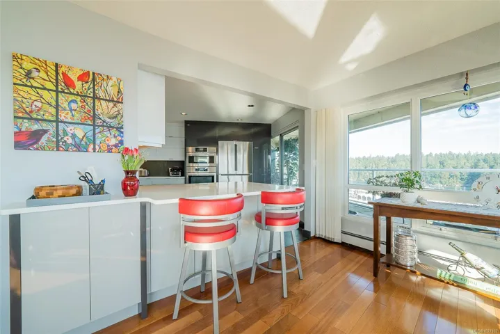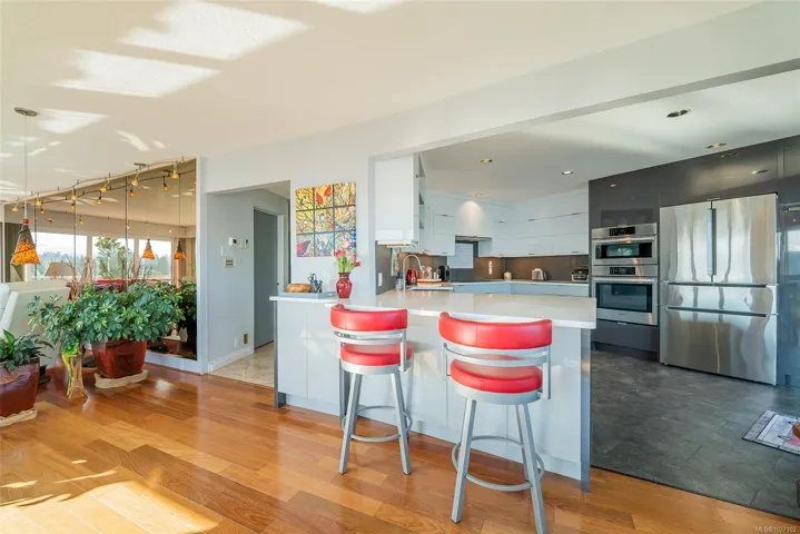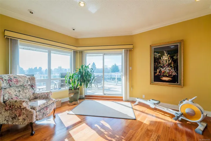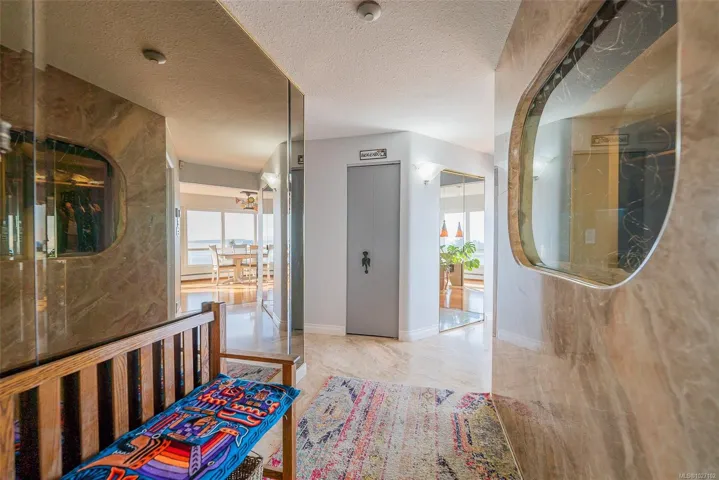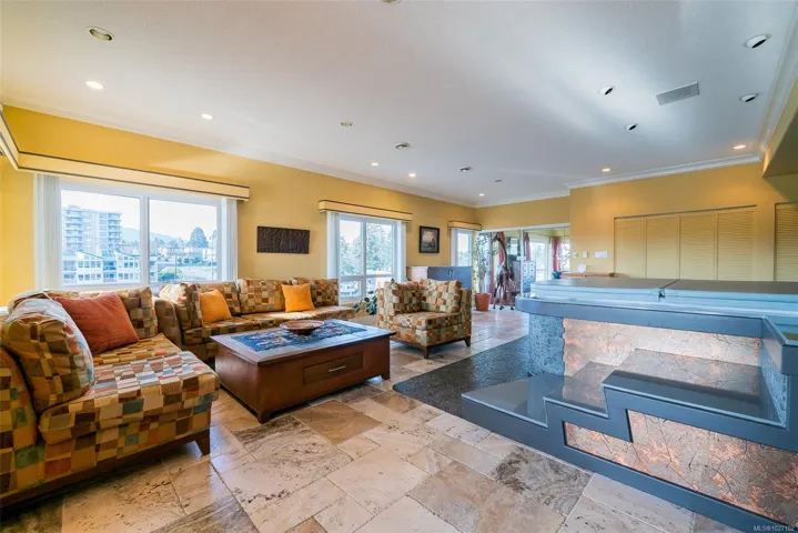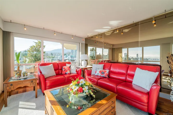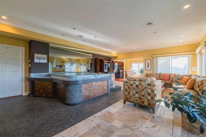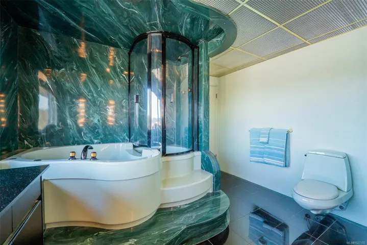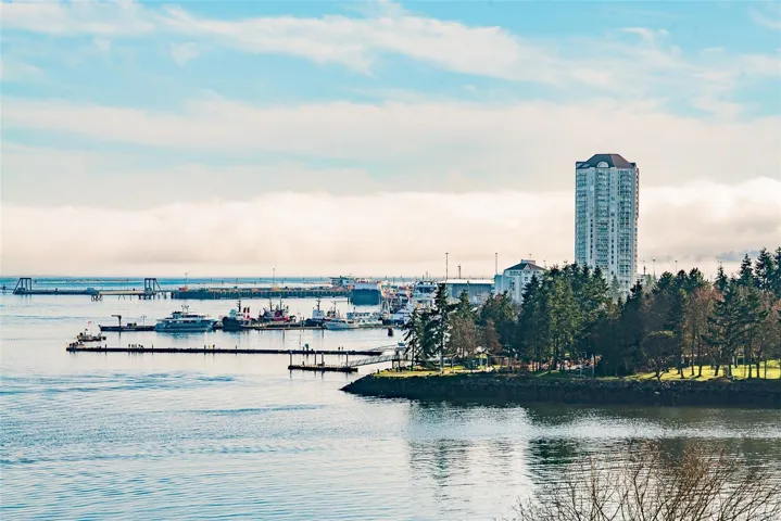 Set across from Nanaimo’s waterfront promenade, this spectacular penthouse features sweeping views of Nanaimo Harbour, Protection/Newcastle Islands, over the Salish Sound to Coastal Mtns. With 2826sf of living space plus 2 large decks, including a 31′ wide covered deck, a living room adjoins the dining area, with picture windows of the gorgeous views. A peninsula kitchen steps out to the covered deck. Family room with indoor hot tub adjoins a rec room/media room and den. The 19’x16′ primary bedroom has 2 walk-in closets and an opulent ensuite with soaker tub. The 2nd bedroom boasts water views, 2 closets, and ensuite. This home is ideal for entertaining with incredible space and decks, ideal for watching the marine activities. The location is steps to the promenade, marinas, kayak launch, Swy-A-Lana waterfront park; proximity to BC Ferries, seaplane terminals, downtown and Hullo Ferries. All measurements are approximate and should be verified if important.