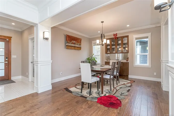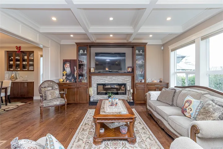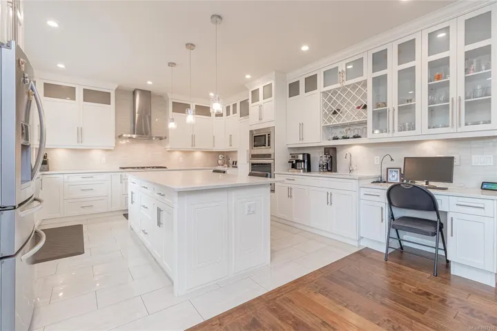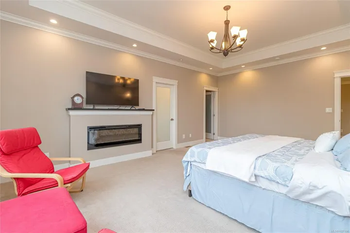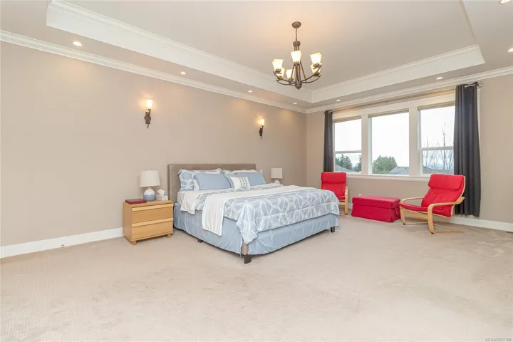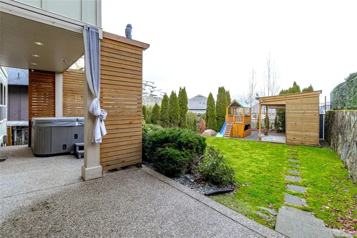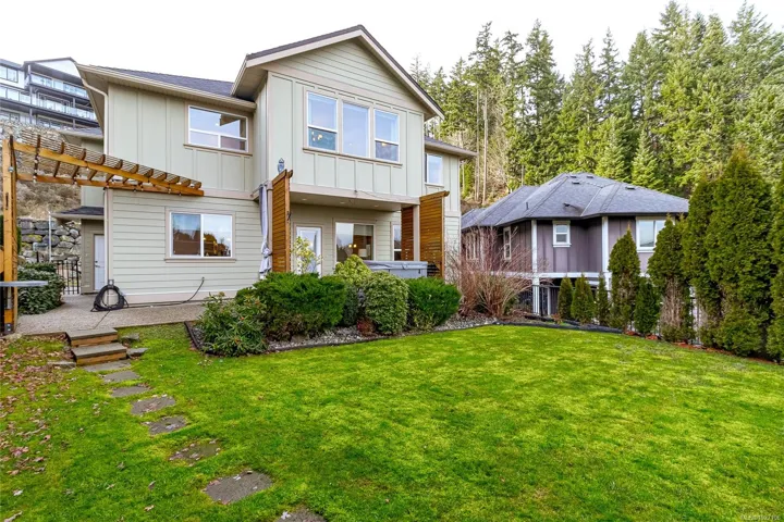 Executive and luxurious home perched at the top of World Class Bear Mountain Golf Resort. 4bed and an office, plus a legal 1bed suite above the garage. Gleaming hard wood floors, built in cabinetry, fireplace, coffered ceilings, wainscoting & panelled walls. White cabinetry kitchen w/large island, quartz countertops farmhouse sink built in wine rack, 5 burner gas stove, dual apron sinks & a massive hidden walk-in pantry. Upstairs find three LARGE bedrooms. Primary bedroom offers beautiful views, 2 oversized walk-in closets, built in vanity, dual sinks, large jetted soaker tub, walk-in rain hood shower, heated floors & quartz countertops. Suite is soundproofed w/its own side access & laundry set. Vaulted ceilings skylights heat pump crawl space security system hot water on demand extra storage & surround sound. The back yard has been tastefully landscaped, fully fenced w/ a dog run hot tub shed & covered BBQ shelter wired & heated roof. Exceptional location and exceptional layout!