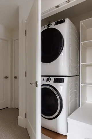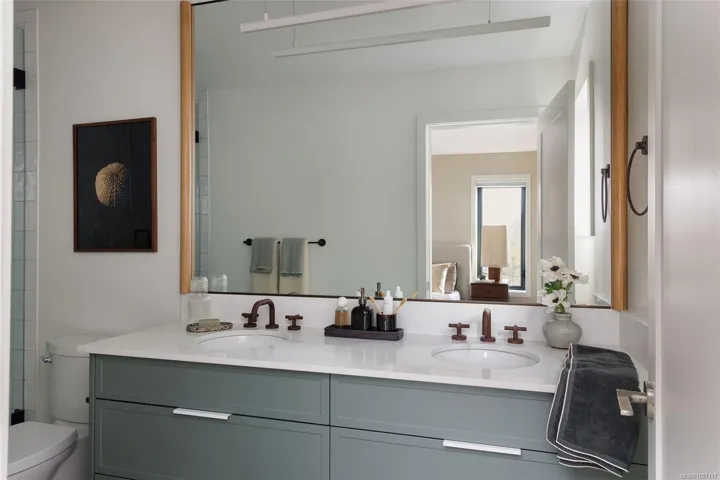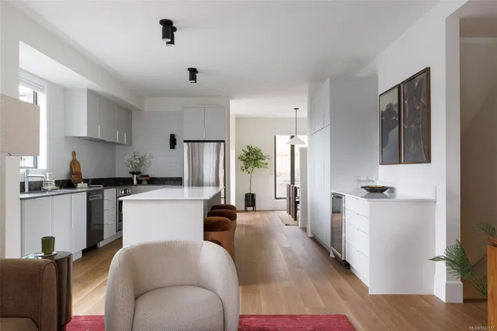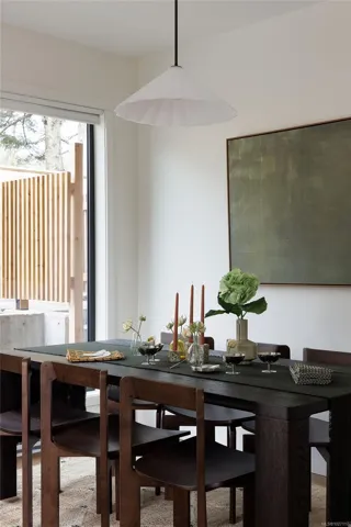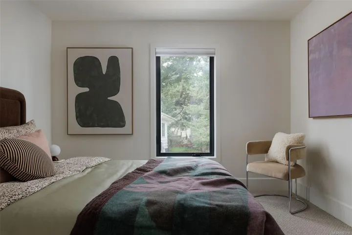 Experience Harper by Formwell, a collection of coastal modern townhomes in the lush, tree-lined Cedar Hill neighbourhood. Situated at the end of a quiet cul-de-sac, this striking home embodies single-family-inspired design and generous indoor / outdoor living with a private, gated west-facing patio, separate balcony, and attached garage. The refined interior, designed by Bidgood, features an elevated kitchen with slim-shaker cabinetry, ample integrated built-ins, Caesarstone counters, and induction cooking by Bosch. Tranquility and convenience define the upper floor, with three generous bedrooms, a main bathroom, and laundry and linen closet. The primary suite features a walk-in closet and a lavish ensuite with custom cabinetry and heated terrazzo tile. The lower level is completed by a versatile flex room and additional storage, while an ERV system & A/C ensure year-round comfort. Photos shown are of the display home. Completing this spring. Price + GST. Open House Sunday 12-2pm.