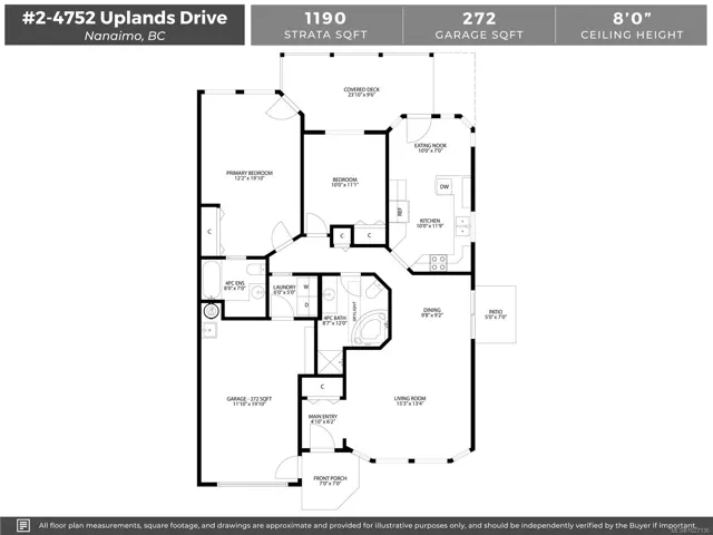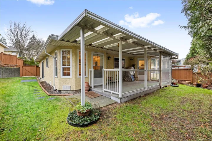 This well-maintained patio home is ideally located in a desirable 55+ North Nanaimo community, just minutes from shopping, restaurants, and everyday amenities. The spacious living room features a front bay window and flows seamlessly into the adjoining dining area, creating a bright and welcoming space. The kitchen offers three appliances, an eating nook, and easy access to the very private, covered patio and yard. The generous primary bedroom includes a four-piece ensuite and direct patio access. A second bedroom and a four-piece main bathroom with an oversized soaker tub provide comfortable accommodation for guests or family. Additional features include in-unit laundry and an attached garage. The complex that allows one small pet up to 22 lbs. A fantastic opportunity for low-maintenance living in a sought-after location. For more info see the floor plan, brochure and 3D tour. All data and measurements are approx and must be verified if fundamental.