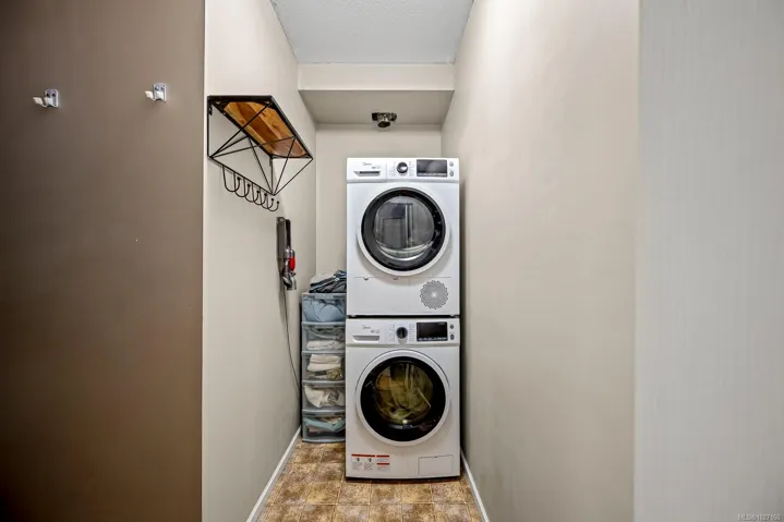 Peaceful and beautifully maintained ground-floor condo at Parkwood, tucked at the end of a quiet cul-de-sac and surrounded by nature. This bright and inviting unit offers comfortable living with a cozy gas fireplace, a kitchen with updated appliances and in-suite laundry for everyday convenience. The spacious primary bedroom features ample closet space, while the versatile den is perfect as a second bedroom, home office or guest space. Step outside to your large private patio with exterior access ideal for morning coffee or easy access to nearby forest trails. The building is professionally managed, pet-friendly and known for its quiet atmosphere, offering secure entry, elevator, storage locker, communal workshop, bike storage and beautifully maintained grounds. Walk through the forest to Ravensong Pool, local shops and downtown Qualicum Beach. An excellent option for downsizers or first-time buyers seeking a relaxed, low-maintenance lifestyle.