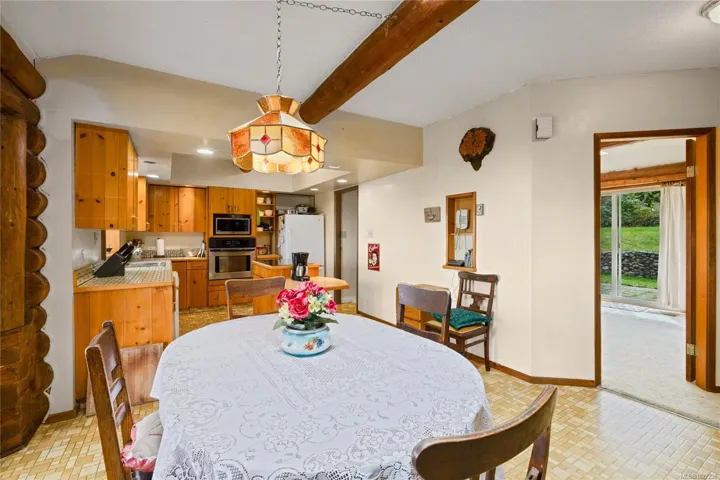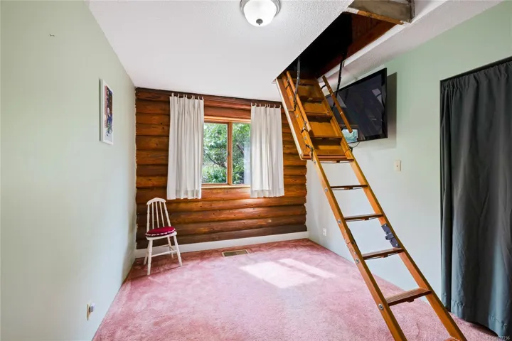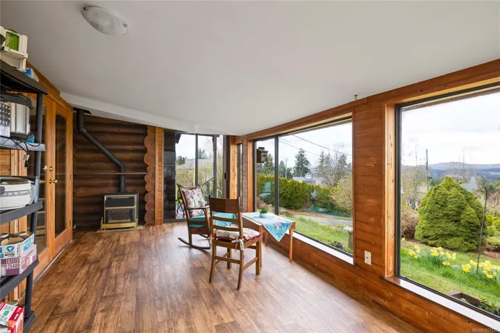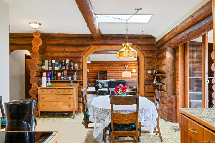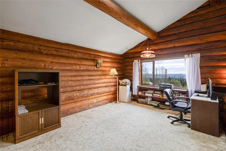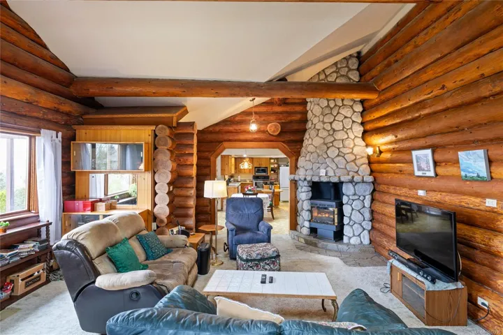 Located in South Jinglepot, this 3 bed, 2 bath log home sits on a 0.39 acre hillside lot with panoramic ocean and city views. True log homes within Nanaimo city limits are rare, and this one offers both character and convenience. With 1,788 sq ft of living space, the home feels open yet comfortable, showcasing warm wood interiors and the timeless appeal of log construction. The bright sunroom is perfect for morning coffee or relaxing at the end of the day while taking in the view. Two gas fireplaces add comfort in cooler months, and natural light fills the main living areas. Outside, the private lot offers mature trees, established landscaping, and space to garden or entertain. A carport provides covered parking. Tucked away yet minutes to schools, shopping, Westwood Lake, and trails, this home offers land, views, and lasting character.