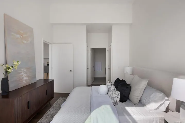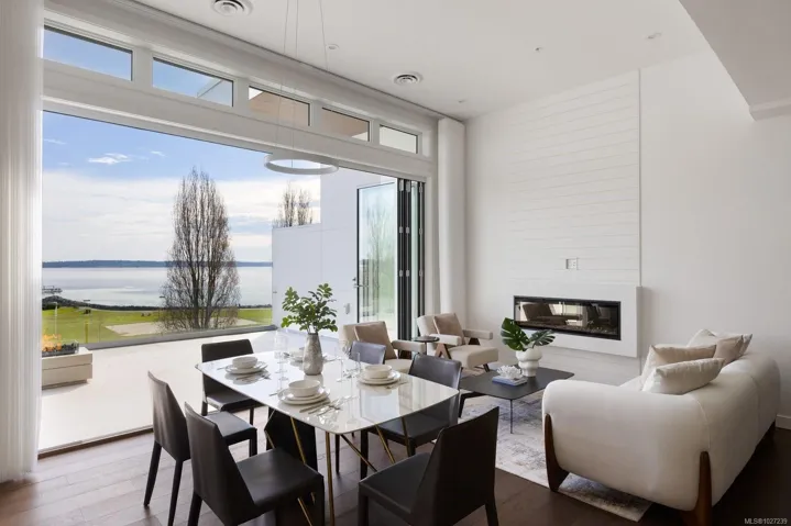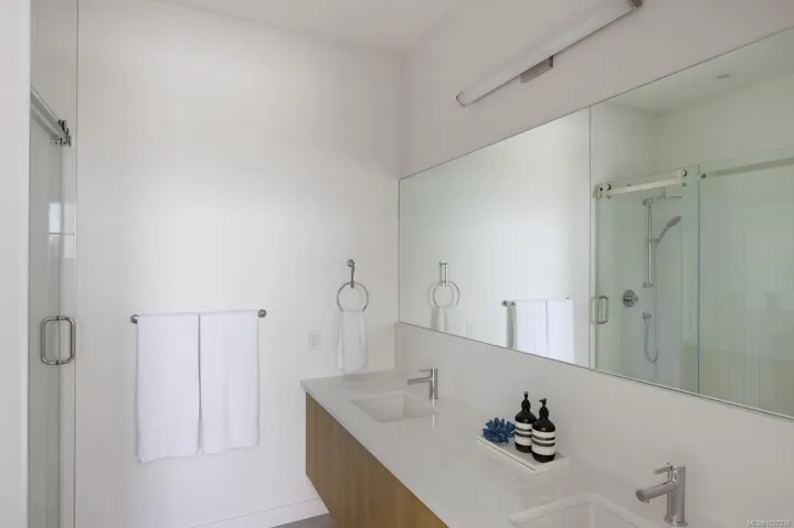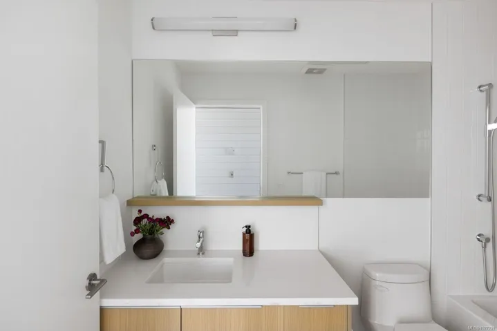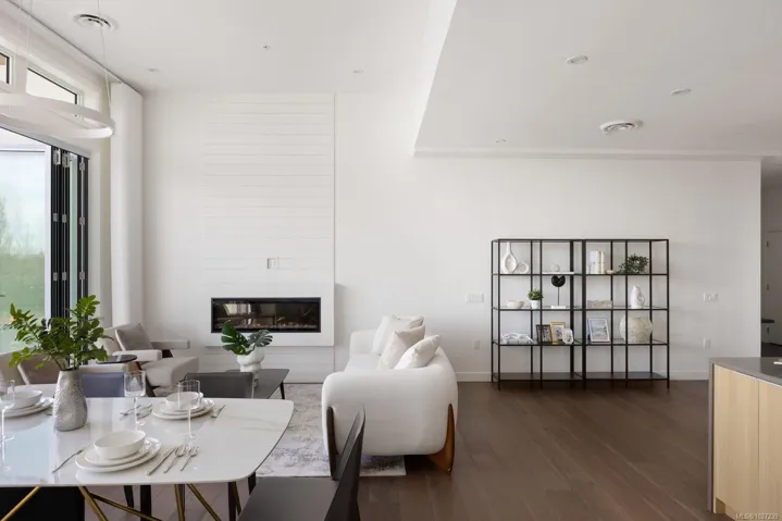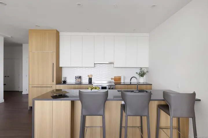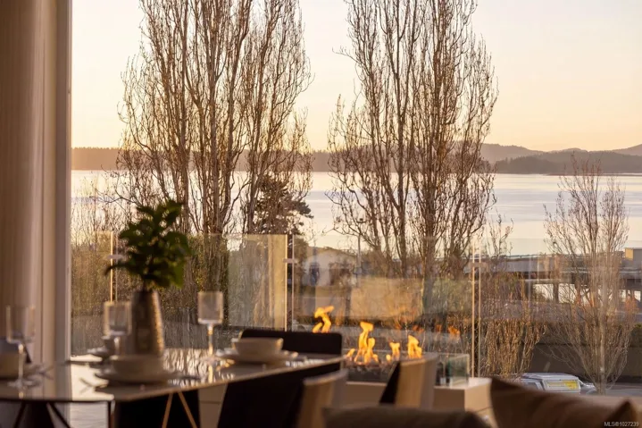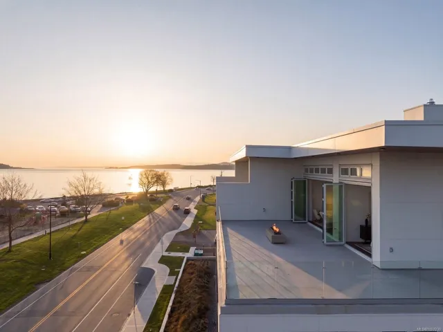 The pinnacle of coastal living in Unit 401 at The Rise on Fifth, a top-floor north-east corner penthouse with magnificent ocean and mountain views. Thoughtfully designed, this bright and airy residence offers an open concept layout filled with natural light. The gourmet kitchen features elegant quartz waterfall countertops and a built-in Fisher and Paykel appliance package. Step outside to a 777 sq ft deck with fire pit, where breathtaking coastal scenery creates an unforgettable backdrop. Spa-inspired bathrooms include floating vanities, tiled walk-in showers and a deep soaker tub. Highlights include two secure parking stalls, energy-efficient heating and cooling, home automation, underground Klaus parking, storage lockers, bicycle storage and pet washing station. Residents enjoy a rooftop patio with commanding Haro Strait views and a short stroll to the beach and Sidney’s vibrant downtown.