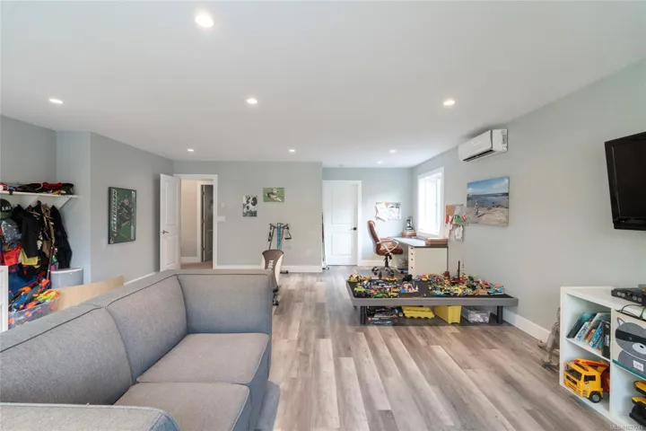 Located in sought-after Greig Estates, this beautiful Brentwood Bay home is perfectly positioned on a quiet cul-de-sac backing onto parkland, offering outstanding privacy and a welcoming family setting. Impeccably updated, the 3 bedroom, 3 bathroom residence features a bright open-concept main level with a well-appointed kitchen, eating area and warm family room with an electric fireplace, ideal for everyday living and entertaining. Separate dining and living rooms add timeless elegance and flexibility. A lovely flex room off the kitchen overlooks the private backyard with mature, manicured gardens. Exceptional 2022 updates include a large family room/playroom, custom mudroom with heated tile floors, additional garage, covered patio and new roof. Beautiful curb appeal and pride of ownership shine throughout. Ideally located near the world-famous Butchart Gardens and the quaint, picturesque village of Brentwood Bay with its charming cafes, local shops, and waterfront.