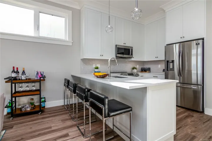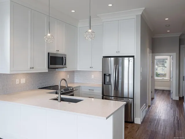 Stunning ocean & Olympic Mountain views, proximity to walking, running & cycling trails, steps from Cook Street Village, & just down the road from Beacon Hill park, your new lifestyle at 1480 Dallas Rd awaits! Built by marquee builders Novus Properties, this 4 bedroom, 4 bath property has been built to the highest level of attention to detail. The front entrance leads into the open concept living & dining area with the kitchen & the first of 4 bedrooms located on the same level. Upstairs you will find 2 more bedrooms with a spacious deck off of the primary bedroom that is perfect for people & dog watching while you take in a bright morning or sunset by the sea. The lower level features a separate & spacious 1 bedroom suite with a private entrance & separate laundry. The entire property has been been designed to facilitate a worry free lifestyle with low maintenance & maximum exposure to sunlight & the ocean views. Life is better down by the sea, come see for yourself!