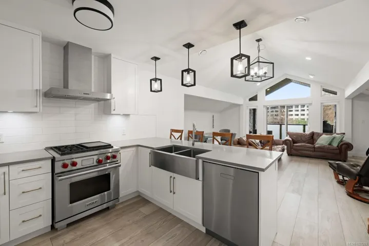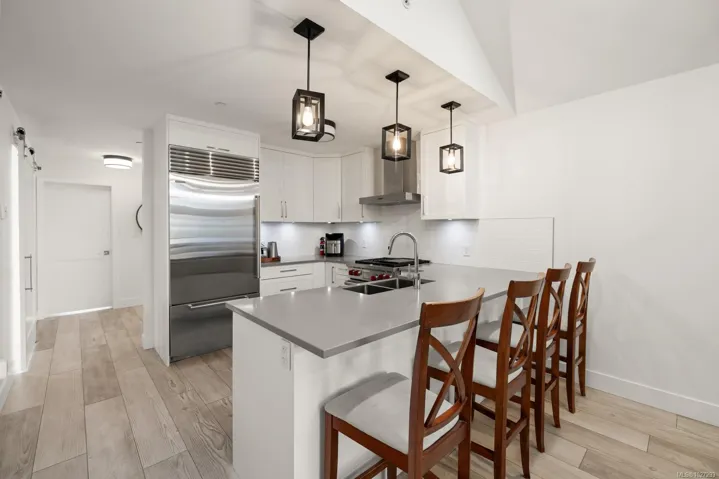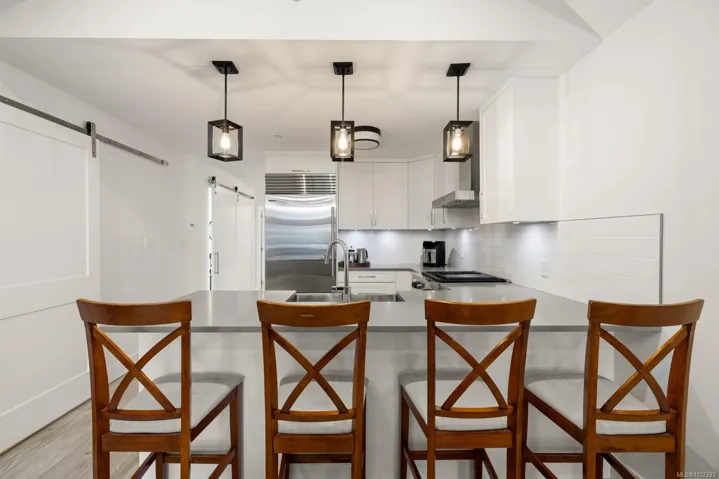 Completed in 2020, this 1,595 sq ft 2 bed/2 bath residence delivers elevated, resort-calibre living in the heart of Bear Mtn. The bright, airy interior showcases wide plank HW floors and dramatic 11’ ceilings that enhance the open-concept design. The chef’s kitchen is anchored by a Wolf gas range, SS appl, and refined modern finishes—ideal for entertaining. The primary suite is a true retreat with vaulted ceilings, a substantial WIC, and a luxe ensuite featuring a dual vanity, under-cab lighting, and an oversized spa-style shower, plus private deck access. A generous 2nd BR and full bath provide flexibility for guests or office use. Two covered decks with gas & water hookups extend the living space, while four separate storage areas add rare practicality. Positioned steps from world-class golf, red clay tennis courts, scenic hiking & biking trails, destination dining, spa amenities, and a full recreation centre—this is resort-calibre living, immersed in lifestyle and luxury, every day.
