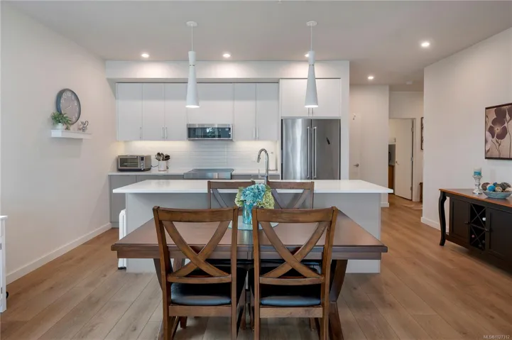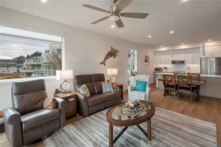 The Best of Coastal Living! Experience contemporary, ocean-view luxury in this rare corner-end unit offering a large patio area. If you’ve been searching for a residence where the view is matched only by the outdoor living space, your search ends here. There is a massive, partially covered patio (approx. 18’x26’). unique to this floor, where you’ll enjoy a private, wrap-around garden and a sleek opaque glass divider for maximum privacy. Inside, this 2-bedroom, 2-bathroom sanctuary feels brand new with modern elegance and high end finishings, and plenty of natural light. The kitchen offers stone countertops, plenty of cabinets and just off the kitchen is a multi use space functioning as a butlers pantry, office and extra storage. Stunning views can be enjoyed from the living area and primary bedroom. This building provides a gym, bike storage, underground parking, storage locker, and a large outdoor common area, and is mere steps from the Sea walk. View today!