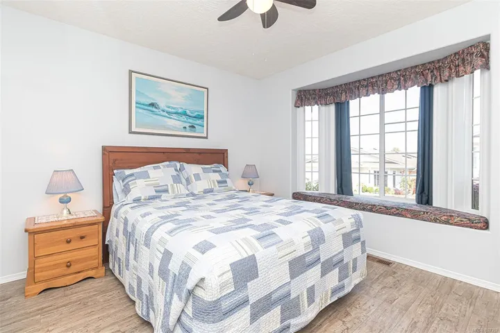 Welcome to 43 Eagle Lane in the sought after Songhees Retirement Complex! This bright 2-bedroom, 2-bath rancher offers a lot for the 55 plus residents. This home features 2 large bedrooms on opposite sides of the home for privacy. The spacious primary suite is large with 2 large closets and nice ensuite bath with large walk in shower. The open living room invites you to cozy up by the gas fireplace and enjoy the vaulted ceilings and large windows. Great layout! This large and bright, open kitchen has lots of cabinets and counter space next to a cozy family room. A huge bonus is this oversize double garage. The low-maintenance yard with raised garden beds allows you to spend more time enjoying this vibrant community and clubhouse with lots of socials. Plus, with easy access to Admirals Walk Shopping Centre, delightful restaurants, Thriftys and the beautiful Portage Waterfront Park. You’ll love some upgrades like the heat pump.