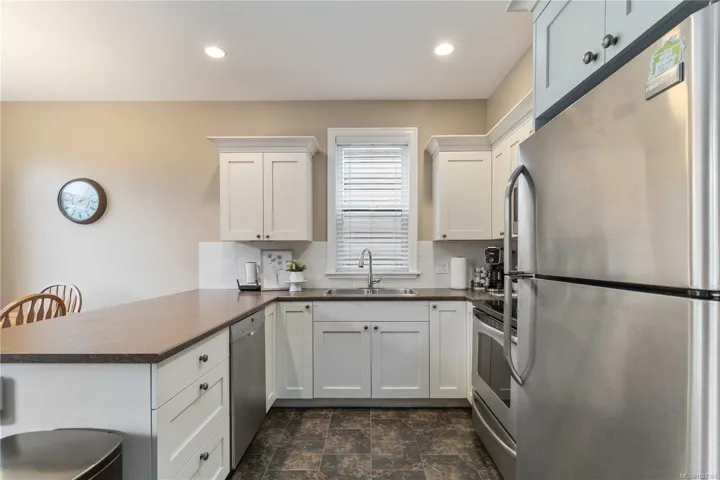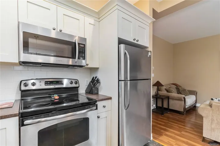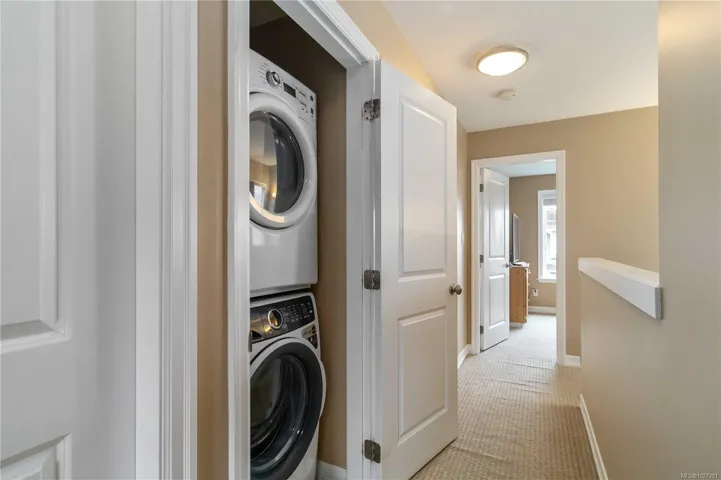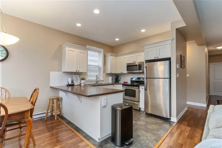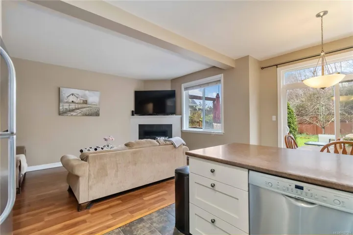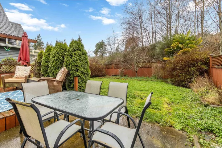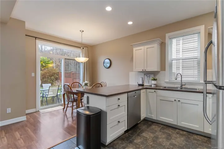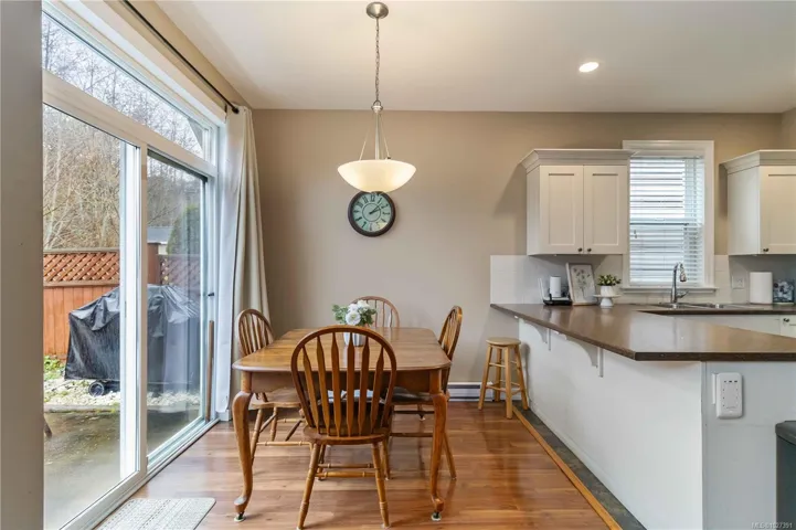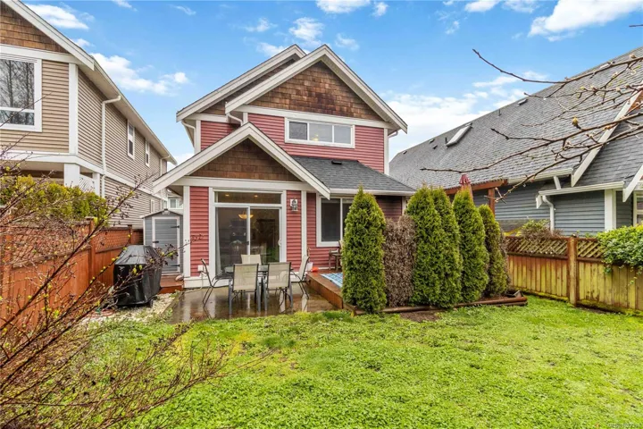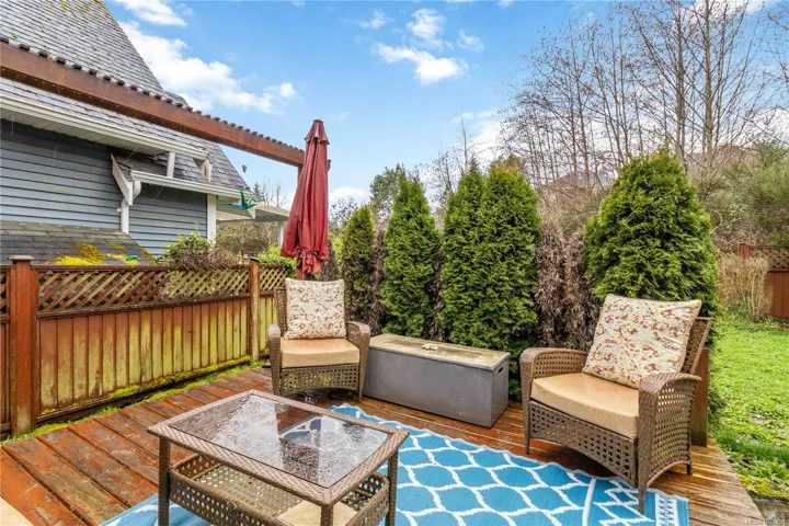 Tucked away on a quiet cul de sac in sought after Trickle Creek Estates, this well cared for 3 bedroom, 3 bathroom home with a den backs onto peaceful parkland and offers a wonderful sense of privacy. Built in 2010, the main floor features a bright living room with cozy gas fireplace, a welcoming dining area, and a country style kitchen with classic Shaker cabinets and breakfast bar. Sliding glass doors lead to the sunny west facing backyard and patio, perfect for summer evenings, complete with a gas BBQ hookup and a 240 plug ready for a hot tub. Upstairs you will find three generous bedrooms including a spacious primary with ensuite, newer glass shower door, and two closets, plus convenient upstairs laundry and a full bathroom. The garage includes EV charger wiring and cat5 plug, hardware with Telus box. Low bare land strata fees, a private road, trails and a peaceful pond just steps away.