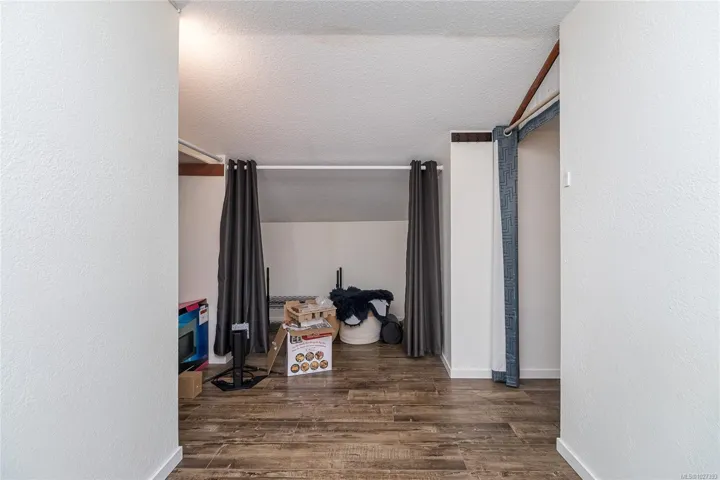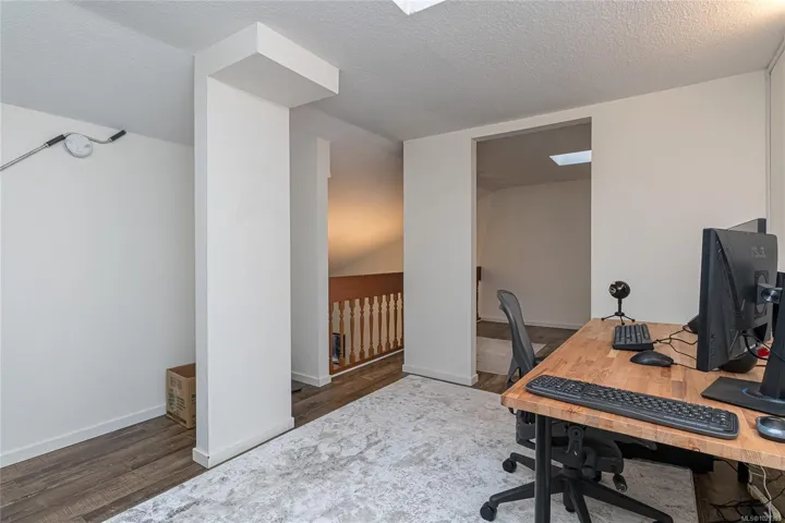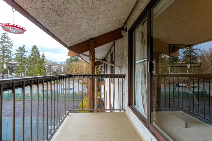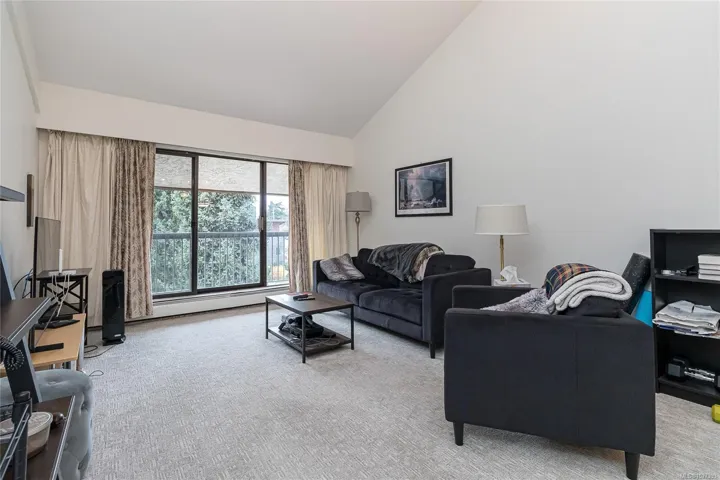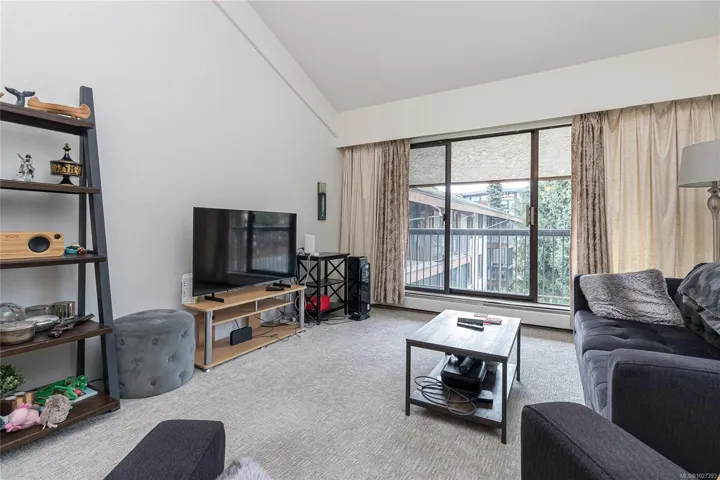 OPEN HOUSE SAT APRIL 18 11:00am-12:30pm! $5000 Buyer credit on closing offered. Bright and spacious top floor loft style two bedroom condo at Royal Woods! Offering 916sqft on the main with soaring 14-foot vaulted ceilings in the living room, a sunny 10×5 west-facing balcony perfect for evening sunsets, and a generous 14×11 primary bedroom with large walk-in closet. The 332sqft loft above features two skylights and flexible space, ideal for a second bedroom, home office, studio and additional storage. Recent updates include vinyl plank flooring and carpet, a refreshed bathroom, smart dimmable LED lighting, and fresh modern paint throughout. Complex set on nearly 5 acres in Saanich near Quadra/McKenzie, just steps to shopping, amenities, and direct transit to UVic right outside your door. Enjoy resort style amenities including indoor pool, hot tub, sauna, gym, workshop, and games room. Strata fee includes heat and hot water. Exceptional value at $399,000, $320/sqft!