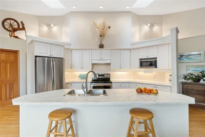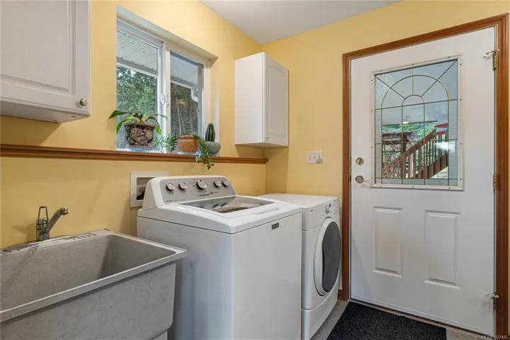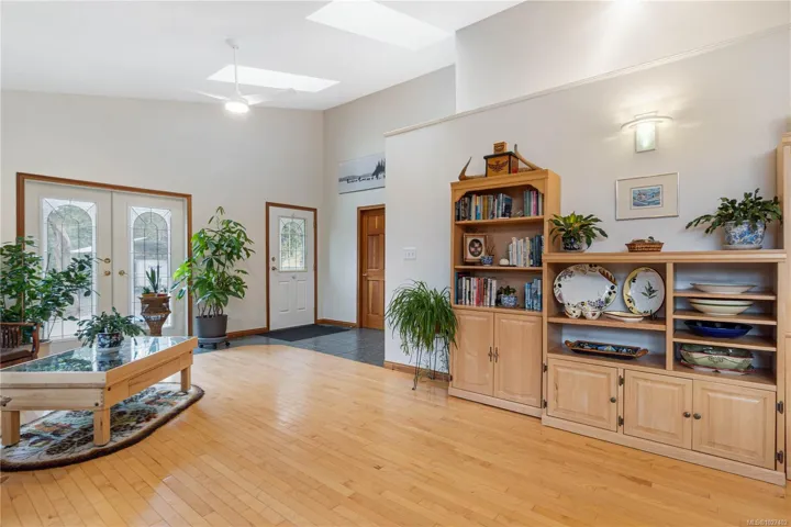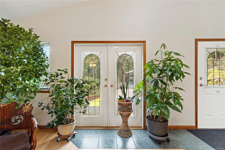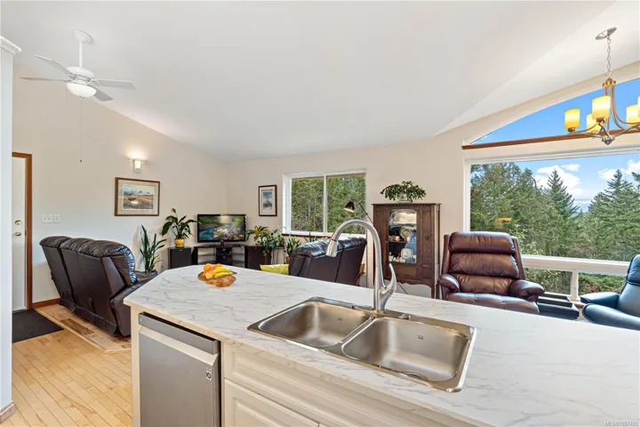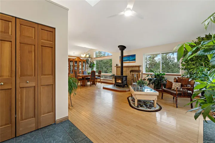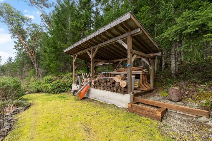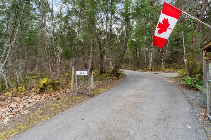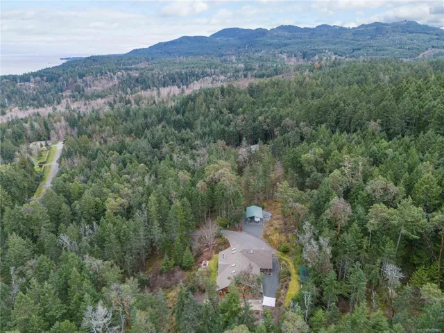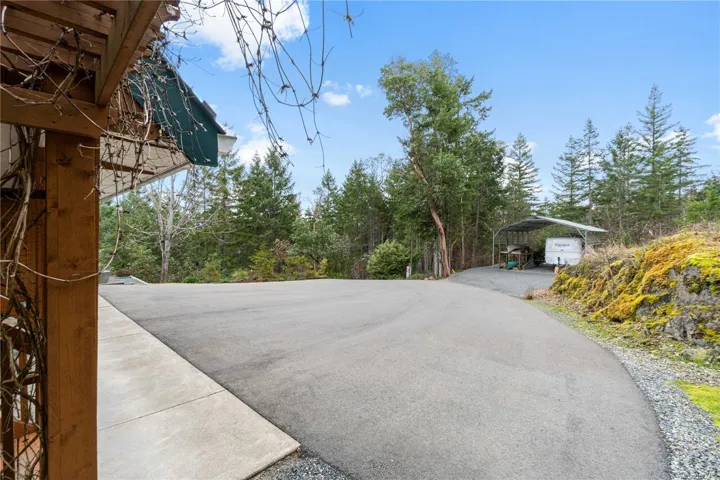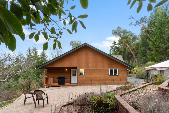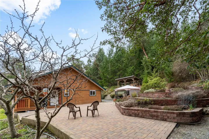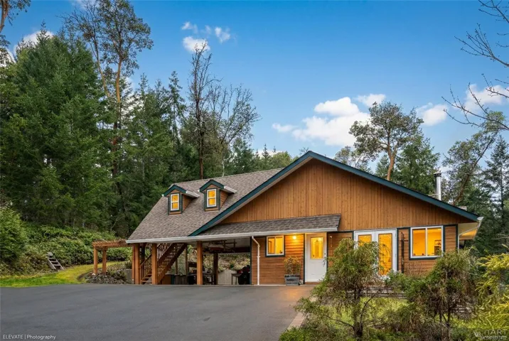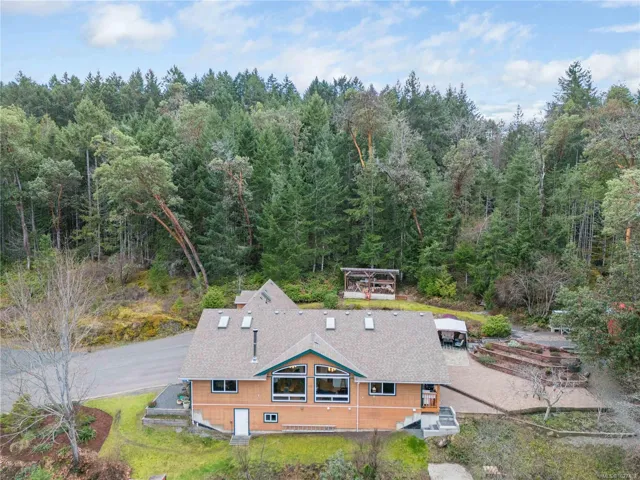 Where privacy meets the rhythm of the West Coast, this hillside retreat offers something truly different. Perched among the trees on 6.07 acres, the 4 bed, 3 bath home spans approx. 2,211 sq ft, with vaulted ceilings and expansive windows that pull in natural light and frame the surrounding forest. The open layout feels bright and connected, ideal for relaxed living or hosting, with a kitchen equipped to prepare the best feast. A private upper-level fourth bedroom guest suite provides separation for visitors or income potential. Step outside to a generous wraparound patio, tiered gardens, and a thriving landscape with grapes, blueberries, figs, and plums. Zoned RR2, allowing for two homes plus suites, offering added flexibility and long-term value. A secondary drilled well could service a second home on the lower portion. Recent upgrades include a newer roof, heat pump, paved driveway, and RV parking with 20×30 steel shelter.
