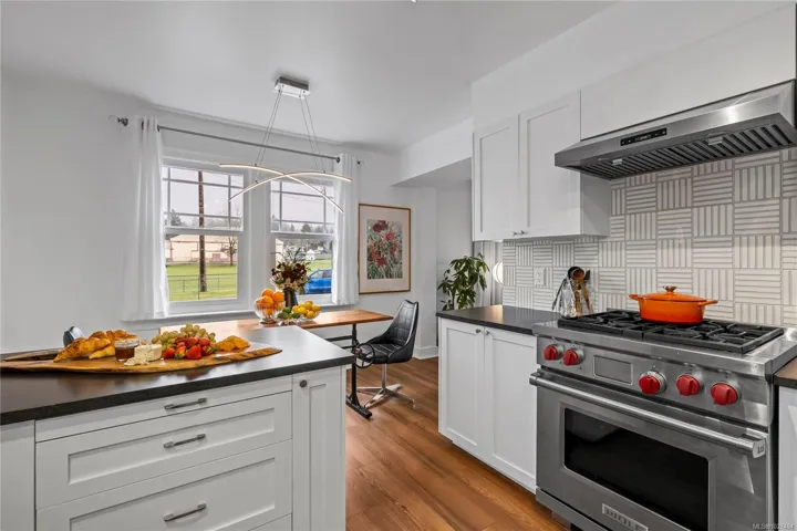 This beautifully updated character home on a 7,400sqft corner lot across from Gyro Park masterfully blends character charm with modern upgrades. Original coved ceilings, Douglas Fir floors, crystal knobs, and vintage doors preserve its timeless appeal, while a renovated kitchen with a Wolf dual-fuel range, two updated bathrooms, new flooring, lighting, and fresh paint tie-in the eras perfectly. Flexible main-level living spaces offer options for dining, work, and flex space. Upstairs, the spacious primary bedroom features a generous walk-in closet or den space, and another large bedroom. The basement provides an additional bonus room and an unfinished space, exterior access, for future potential. More features include a newer roof & gutters, patio pavilion, raised garden beds, artfully designed fruit and vegetable gardens, heritage fruit trees, grape vines, and wide variety of unusual edible perennials. A true gardeners dream! See full list of updates and book your tour today.