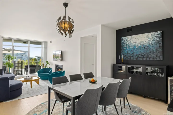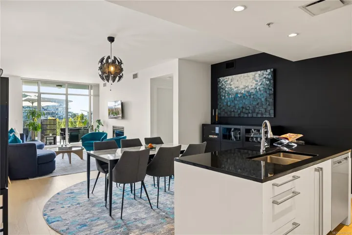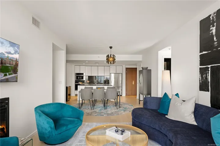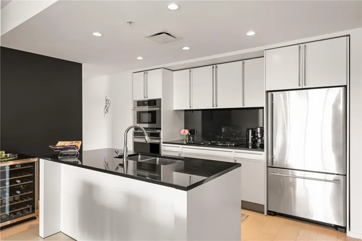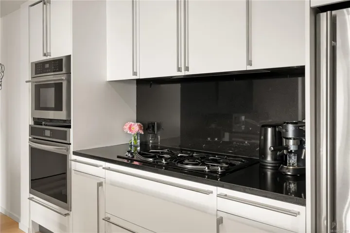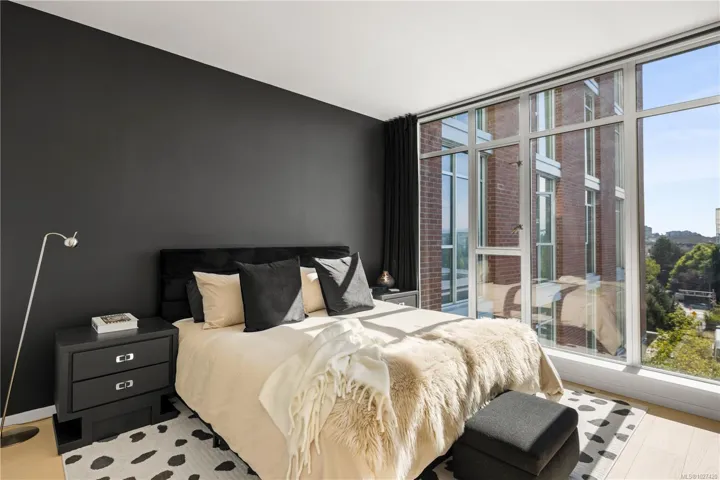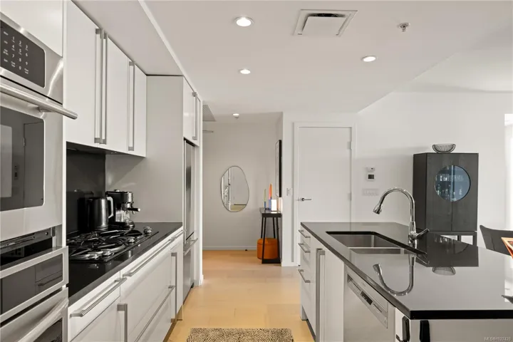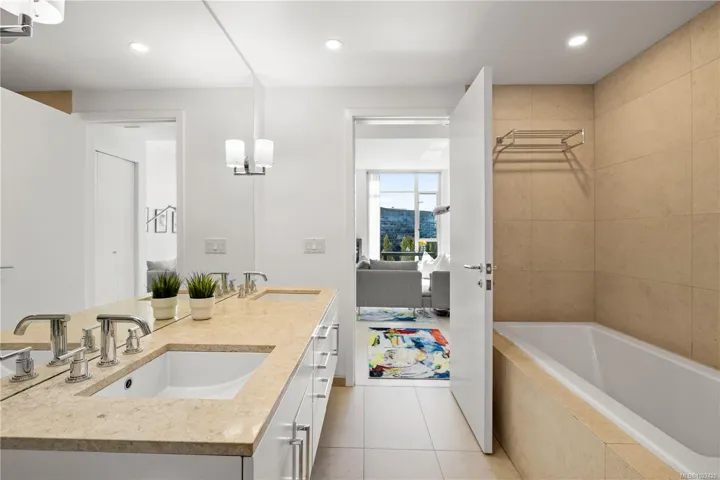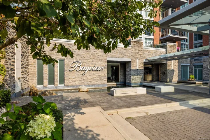 Bayview Residences — over 1,300 sq ft of elevated luxury. This bright, fully updated home offers two primary bedrooms with spa-inspired en-suites and a sunny south-facing balcony for seamless indoor-outdoor living. Refined upgrades include new hardwood floors, fresh designer paint, modern blinds, and an LG one-piece laundry centre. The sleek kitchen features a Frigidaire Gallery wall oven with convection & air fry and a Bosch dishwasher. Enjoy concierge service, fitness studio with whirlpool & steam, business centre with secure package storage, elegant lounges, car & pet wash bays, XL storage locker, and secure underground parking. Steps to Bayview Place Dog Park, the Songhees Waterway, cafés, pubs, and dining. Pet- and rental-friendly. A rare offering defined by scale, privacy, and signature Bayview living.