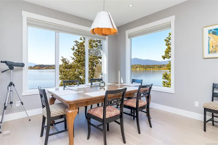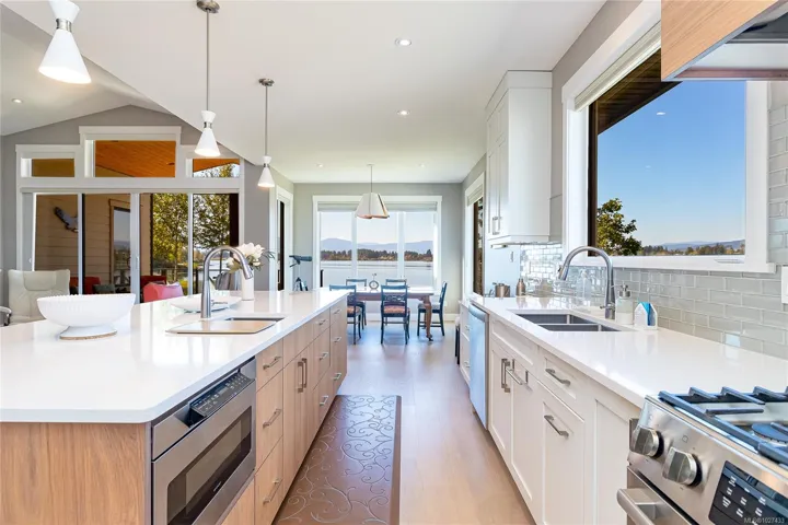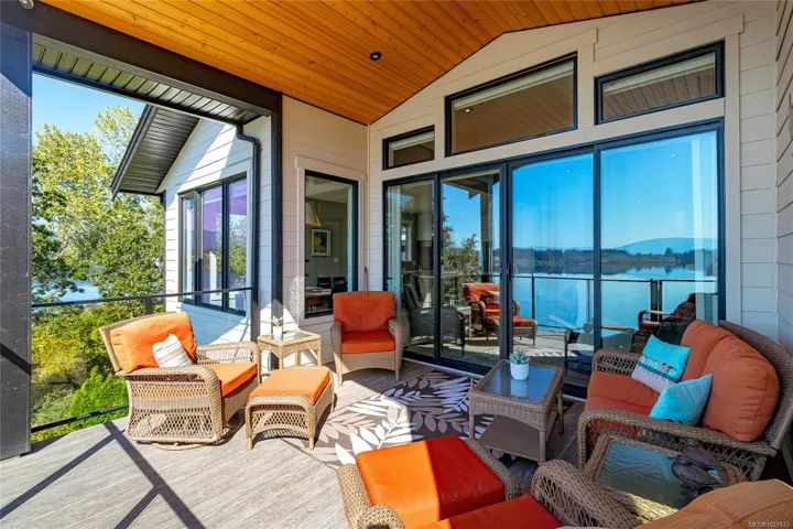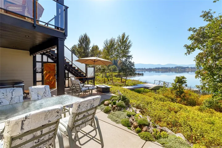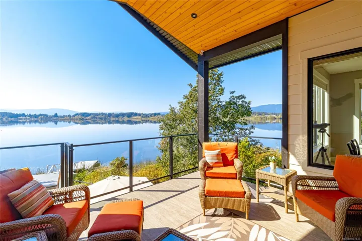 Discover this thoughtfully designed, 2021 custom built by Vandine Construction, 4-bed+den executive home on Quamichan Lake. The main floor showcases engineered hardwood, quartz/silestone/tile window accents, spacious living area with an extra-wide gas fireplace all taking in the stunning lake and mountain views. The kitchen boasts a remarkable pantry, high end appliances and good quality cabinetry with plenty of storage space. Comfort is ensured with a gas furnace, heat pump, and natural gas generator. Outdoor living shines with a large covered deck finished with glass panels and stairs down to the lower patio with 2 BBQ hookups and gas firepit. This, all just steps from a beautifully finished dock that has all-weather surfacing and your own kayak launch brackets. Extras include: professional landscaping, rock crevice garden, water filtration/de-chlorination system, hard-wired security cameras, and more. Come see this perfect blend of luxury, function, and lakefront lifestyle.