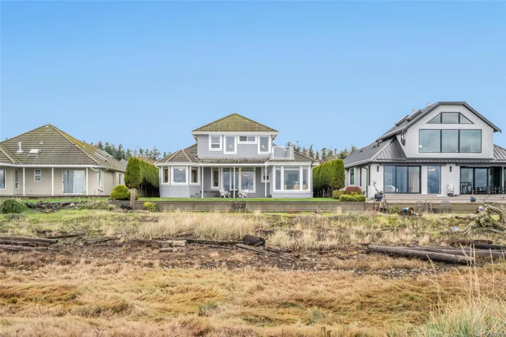 Walk-on waterfront home in Admiral Point, overlooking French Creek Harbour. Start your day with spectacular sunrises from the kitchen, family room and inspiring office. Enjoy your morning coffee from the stamped concrete patio and enjoy marine life with sealions, seals, eagles, herons, and occasional whales! Watch fishing boats, Coast Guard vessels, and cruise ships pass by. This lightly lived in home features a custom curved staircase that leads to the upper bedrooms, including an oceanfront primary with balcony. Quality features: hardwood floors, stainless appliances, granite kitchen counters, gas and electric fireplaces, and an easy-care coastal yard. Exterior painted 2025; HWT 2024; heat pump 2022; furnace 2019. Steps to windsurfing, paddle boarding, kayaking, and minutes to salmon fishing, French Creek Seafood Store, 356 Café, and the local pub. With close marina access, fresh seafood, and peaceful coastal living, this waterfront home offers a lifestyle that is truly unmatched.