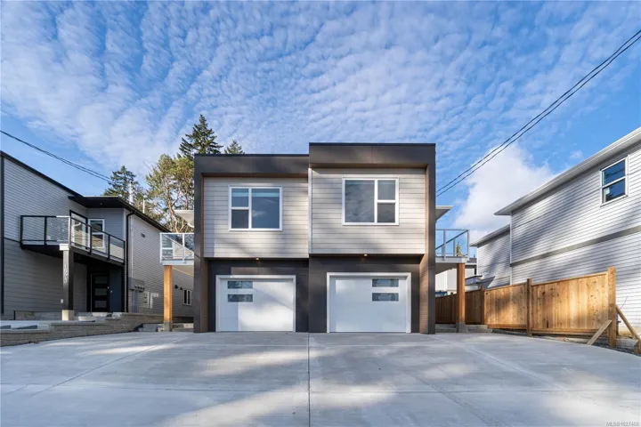 Brand new, move-in ready half duplex with a LEGAL SUITE in desirable Chase River. Offering 1,992 sq ft of thoughtfully designed living space, the main level features 3 bedrooms, 2 full baths, 9-ft ceilings, quartz countertops, stainless steel appliances, and an energy-efficient mini split heat pump for heating and cooling. The lower level includes a fully self-contained 2-bedroom legal suite with private entrance, separate meter, and its own AC unit—ideal for rental income or extended family. Enjoy the oversized garage, built-in fire sprinklers, full appliance package, and 2-5-10 New Home Warranty. Step down to a large, landscaped backyard—perfect for relaxing or entertaining. Quiet street near Chase River Elementary, parks, trails, and amenities. Price plus GST. This home does qualify for the New 1st Time Home Buyers GST Exemption and for qualified Buyers there is a PTT exemption as well. Measurements from plans; verify if important.