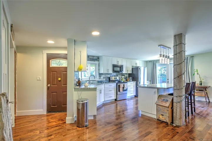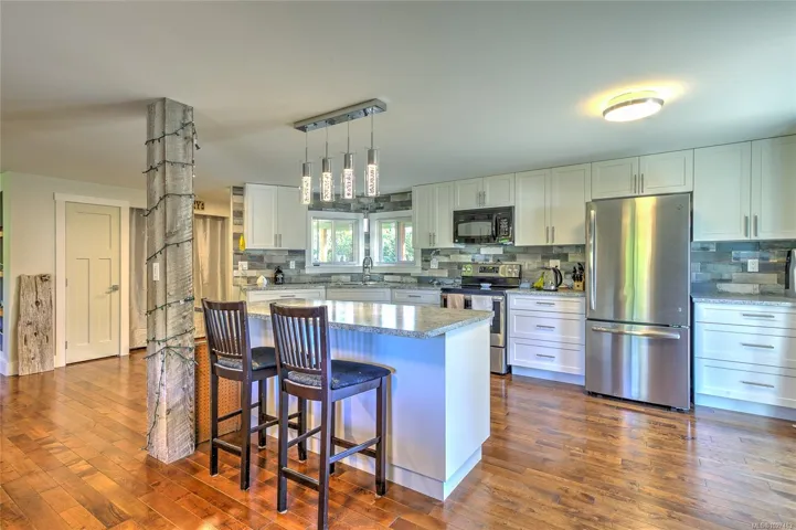 Don’t let the charming exterior fool you. This hidden gem is packed with surprises! Main level living with 3 spacious BDS, 2 stunning BTHS and bright open living areas. Fully renovated top to bottom. New hardwood floors, drywall, electrical, plumbing, custom kitchen by Creative Woodcraft with large island, new baths with heated floors, soaker tub in ensuite, interior doors, paint, trim and more. Off the kitchen, enjoy sunsets from the large wraparound deck or relax in your flat usable yard with mature hedges for maximum road privacy. Woodworker, tinkerer or need extra space? Downstairs offers 1200 sq ft of workshop with walk-in outside access, added storage and laundry. 15 GPM well and connected to city sewer. Located in a quiet area set back from the HWY, minutes to shopping, parks and recreation. Loads of room for your cars or RV’s. Mixed Use residential zoning allows endless possibilities.
