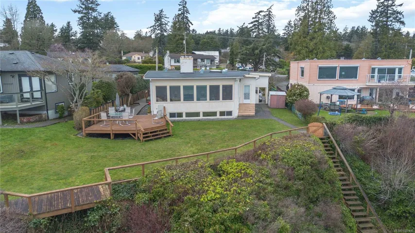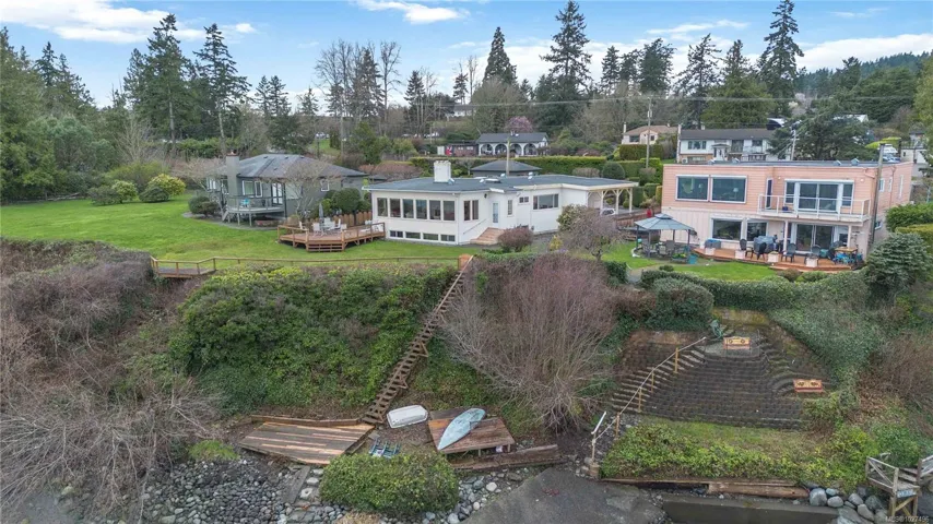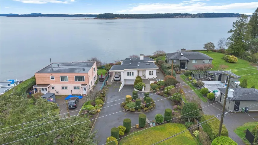 This waterfront mid-century modern home showcases sweeping ocean views across Haro Strait to the Gulf Islands, the San Juans, Mt. Baker, and Sidney’s twinkling lights. Nestled in sought-after Bazan Bay on the Saanich Peninsula, the level 0.28-acre property offers ever-changing scenery, from passing marine traffic to visiting wildlife. The comfortable one-level home features 2 bedroom+ den and a full basement, ready for your updates—or the perfect setting for a custom dream build. Manicured gardens, sun-drenched patios & deck space, a single garage, carport, and circular driveway provide both beauty & convenience. Direct waterfront access invites kayaking, paddleboarding, or peaceful beachcombing right from your backyard. Ideally located just minutes to parks, transit & the charming seaside town of Sidney, with easy access to ferries, the airport, and downtown Victoria. Oceanfront opportunities like this are rare—don’t miss your chance to embrace the quintessential West Coast lifestyle.