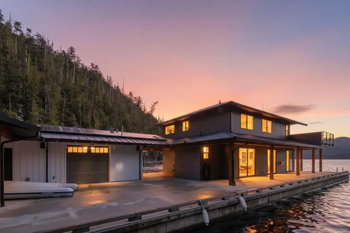 At Hoiss Point in Nootka Sound, few offshore properties command this level of design & capability. Built with the strength of a traditional residence, this modern float home delivers serious West Coast performance plus refined comfort. Clean lines & quality construction create a sleek interior rarely found in remote settings. Solar power, hot water on demand, in floor heat & remote climate controls ensure effortless year-round living. A gas fireplace between oversized windows frames shifting forest greens & ocean blues. Expansive gathering spaces, generous bedrooms, a large kitchen, a substantial shop & dedicated fish cleaning station support extended stays & serious sportfishing. Immediate access to trophy tuna waters, strong salmon runs & abundant marine wildlife completes the offering. Commercial zoning allows private enjoyment or potential for a sportfishing lodge. Exceptional craftsmanship throughout, completed by Pacific Marine Construction, a respected West Coast marine builder.