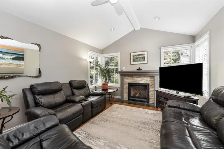 Rare offering~! This exceptional town home is the ONLY fully detached single unit in the lovely, tucked-away Valhalla complex. Beautifully upgraded, this well-designed, elegant unit has vaulted ceilings, a high-efficiency gas fireplace & beautiful wood floors in the living room. Quality appliances with custom cabinetry & a generous island make for a fabulous galley-style kitchen. Both main floor & upper level bedrooms have full ensuite baths with lovely tile details & windows. The upper-level bath boasts a top-of-the-line, Safestep walk-in tub/shower system with features including jets, lighting, and more. Gorgeous French glass doors lead into the den with a walkout to the beautifully-tended & maintained U-shaped garden that surrounds the back of the home, for abundant outdoor living spaces on level lawns with a very private perimeter for relaxing/entertaining. Large garage has space for a workshop, the water purifying system and storage. New roof & gutters in 2023 and new skylights.