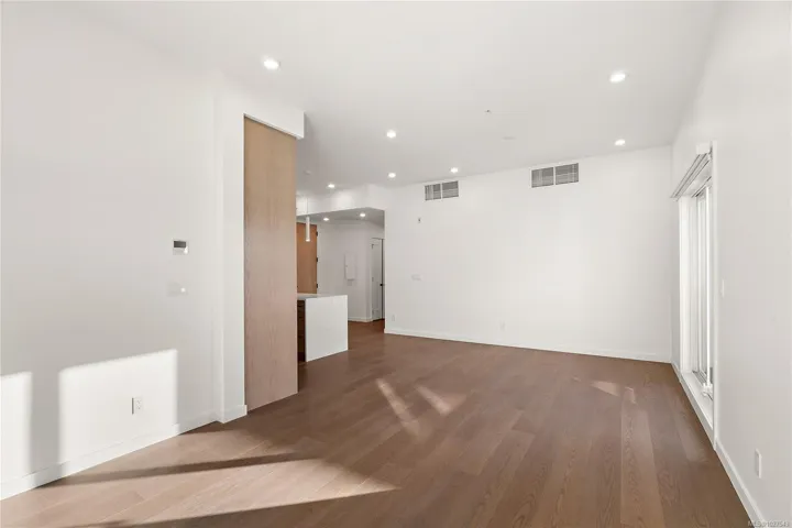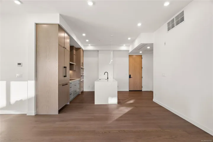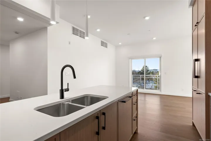 Move-In Ready! Welcome to penthouse 503 at The Proxima, a top-floor residence ideally located in the heart of Esquimalt Village, just moments from Saxe Point Park, local breweries, shops, & the waterfront. This thoughtfully designed unit offers vaulted ceilings that enhance the sense of light & openness, while hardwood flooring throughout adds warmth & refinement. Overlooking the landscaped courtyard, this unit enjoys a peaceful outlook from its balcony — an inviting space to relax & unwind. The kitchen is beautifully appointed with 2 toned cabinetry and Fisher & Paykel appliances, combining elevated style with everyday performance. The primary bedroom provides a comfortable retreat, complemented by a well-designed ensuite & walk in closet. Built by award-winning GT Mann Contracting, residents at The Proxima enjoy access to premium amenities including a fully equipped gym, atrium, and landscaped courtyard offering a lifestyle defined by comfort, community, & coastal convenience.