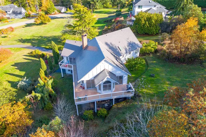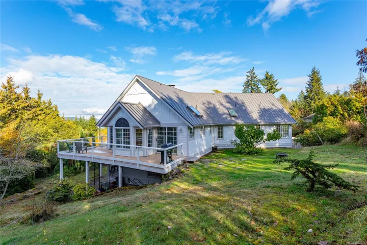 This STATELY HOME was thoughtfully designed to capture the majestic ocean, island and Mtn views while also maintaining privacy and providing a usable sunny 1.12 acres. Greeted by a grand foyer with in-floor heat and a 24′ ceiling, this home continues to impress! The expansive upper floor with its 15′ vaulted ceilings feels ultra spacious. Oversized windows make it very bright and allow spectacular views from most every room. The large deck with glass panels is great for outdoor living/entertaining. The bright open kitchen is a chef’s delight with its gas cooktop, double walled oven and island. With 5 bedrooms and a large, bright family room on the main, this wonderful family home exudes excellence. BONUS: Fruit trees/sunny yard; a few minute walk down the road leads you to a trail network to over 50 Acres of forests/km’s of public trails for peaceful walks. ZONING ALLOWS for detached Guest Cottage or Secondary Suite. A DELIGHTFUL RURAL SETTING yet minutes to Sidney, Ferries, Airport.