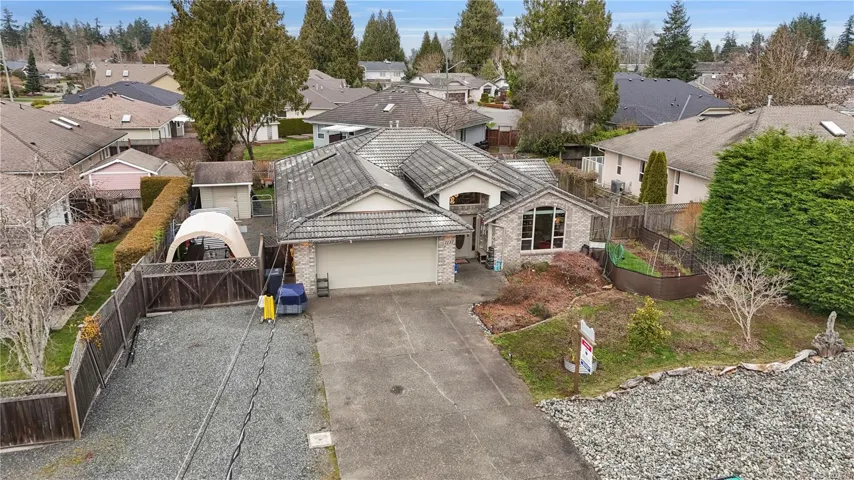 Welcome to this 3 bedroom, 2 bathroom rancher in the sought-after community of French Creek. This home features vaulted ceilings in the living room, creating an open atmosphere, while tray ceilings in the kitchen, family room & dining areas add a touch of refined style. The well designed kitchen boasts an eating nook, stainless steel appliances & storage space. The kitchen seamlessly connects to the family room, which includes a cozy gas fireplace. The living room & adjoining dining room offer versatile areas. The primary bedroom includes a walk-in closet & built-in vanity. The ensuite features a tub, separate shower & natural light from a skylight. 2 additional well-sized bedrooms, a 4-piece bathroom & convenient laundry room complete this home. Outside, you’ll find a covered patio overlooking a large, fully fenced backyard with gardening beds. Don’t miss the RV/Boat parking & heat pump! This home is just moments from Morningstar golf course, French Creek marina & plenty of shopping!