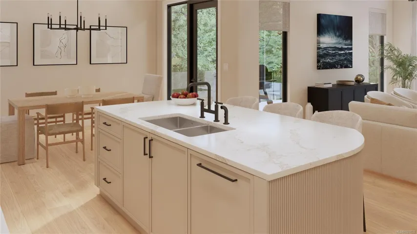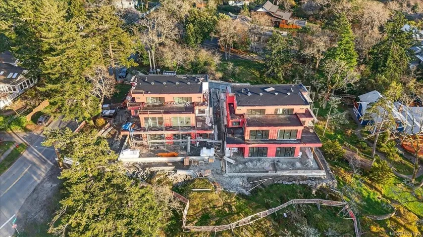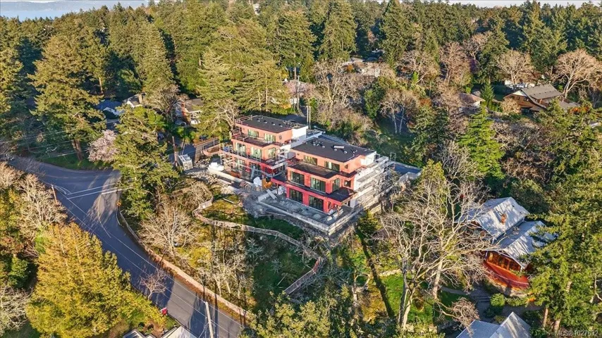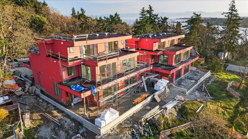 COVE CREST at Ten Mile Point offers an exclusive collection of four luxury strata residences, each providing over 2,700 sq ft of refined coastal living with views from every level. Thoughtfully designed for comfort and longevity, each three-level home features a private in-home elevator for seamless access throughout.The main floor presents open-concept living with a chef-inspired kitchen, premium appliances, quartz countertops, custom cabinetry, and an inviting living and dining space anchored by a contemporary fireplace. Upstairs, the primary suite includes a spa-inspired ensuite and walk-in closet, complemented by two additional bedrooms, full guest bath, and laundry. Top level offers a flexible lounge with powder room and access to a stunning rooftop terrace. Enjoy nearly 500 sq ft of elevated outdoor space plus private yard area. Just steps to the beach, enjoy breathtaking sunsets, scenic coastal walks, and the quiet charm of one of Ten Mile Point’s most coveted seaside pockets.