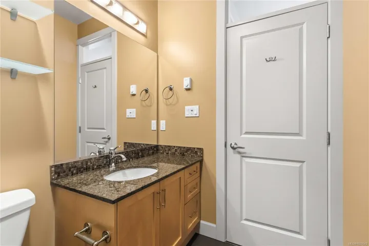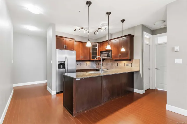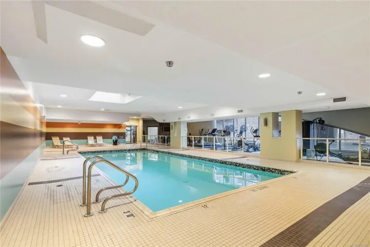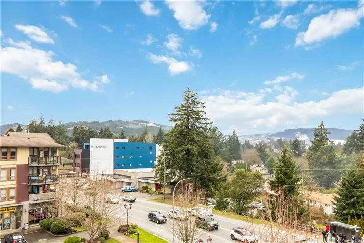 Welcome to this TOP FLOOR northwest corner unit in the popular Waterstone complex. This unit offers soaring vaulted ceilings, a gas fireplace, open concept kitchen/dining and living area, primary bedroom with double closets and an ensuite bath with walk-in shower, generous second bedroom and full 4 piece bathroom. A huge wrap around deck with views over Glen Lake to the Sooke Hills is the perfect spot to take in the sunset. Additional features included heated tile floors in the bathrooms, on-demand hot water, natural gas BBQ hookup on the balcony, secure underground parking, bike storage and a dedicated storage room adjacent the parking stall. The Waterstone offers outstanding amenities including a well-appointed gym, heated indoor pool, sauna and meeting room! Pets are welcome too. Centrally located on a bus route, a 5 minute walk to Glen Lake and just a few blocks to the excellent shopping in downtown Langford.