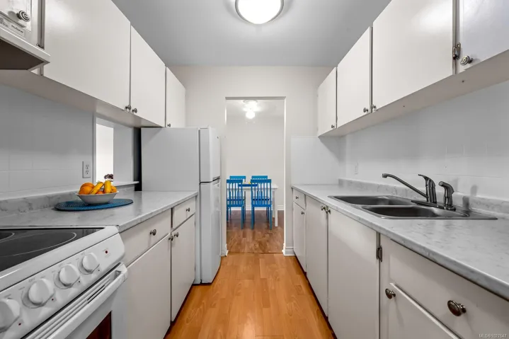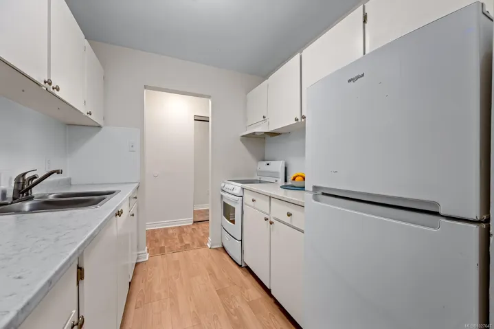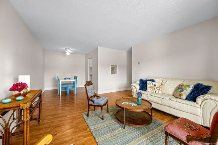 Welcome home to this neat and tidy, top floor, 2-bedroom, 1-bathroom condo in East Courtenay. This well-maintained unit features 2 spacious bedrooms, bright living space, newer kitchen countertops, and laminate flooring throughout the entire home. Enjoy your mornings on the cozy balcony with a cup of coffee. The bathroom boasts a modern vanity and white tiled surround. You’ll also appreciate the large in-suite storage, perfect for your bike or pantry items. The building has been recently upgraded with new exterior siding and windows, and it is professionally managed. Additional conveniences include laundry facilities on each floor and an elevator. Located just a short distance from Superstore, Costco, Thrifty’s, NI College, the Aquatic Centre, the Hospital as well as several restaurants and shops. This home offers a peaceful living experience at an affordable price point. Please note, no pets are allowed, rentals are permitted. Book your showing today.