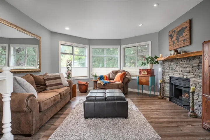 You’ve found a splendid updated family home on a large corner lot in the cul-de-sac in one of North Nanaimo’s best neighbourhoods of Parkwood Estates! This 4 bed 3 bath 2164sq ft. home saw extensive renovations in recent years! Steps to shopping, schools, and parks, this location is sought after for a reason! Upstairs, the stylish open concept kitchen, living, dining area exudes elegance and bold styling blended with function. Step out onto your back deck and enjoy beautiful evening skies. The primary bedroom is roomy with WIC and updated ensuite. Downstairs is a large family room and bedroom, and flex area that could be made into another room for an office or craft room. The two car garage offers ample storage. Step out onto your back deck or the lower patio overlooking a large fully fenced yard with ample RV/Boat storage. With lots of sunny exposure, this lot offers plenty of versatility, and even potential for a shop or carriage home! Measurements by iguide, inquire for more info!