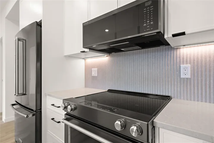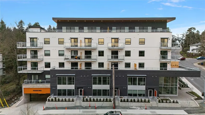 Move-In Ready at The Proxima!! Welcome to Unit 412 in the Adamo building located off Esquimalt Road in the heart of Esquimalt Village. This efficiently designed 1 bed, 1 bath unit offers 550 finished square feet perched up on the 4th floor for ample natural light. Finished in the lighter Lumen colour scheme, the interior feels bright and airy, pairing clean, contemporary tones with quality craftsmanship. Built by award-winning GT Mann Contracting with interiors curated by Spaciz Design, the home features quartz countertops, an eat-in kitchen island, premium appliance package, fireplace, and a heat pump with cooling for year-round comfort. Residents enjoy access to thoughtfully designed amenities including a fully equipped gym, atrium, & courtyard. Just steps to Saxe Point Park, local breweries, Esquimalt Market, shopping, & Archie Browning Sports Centre, this is walkable living w/ everyday convenience. Secure underground parking & storage included.