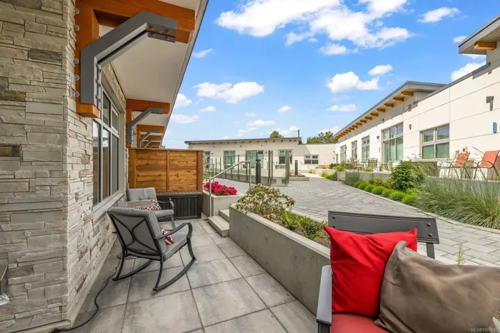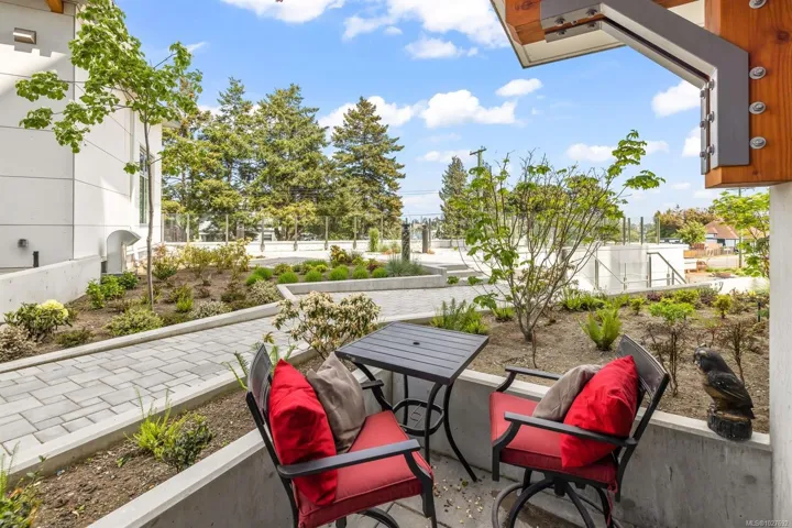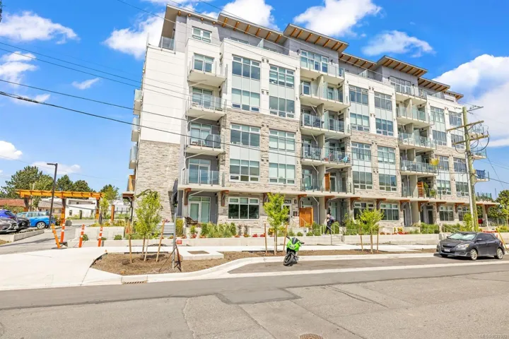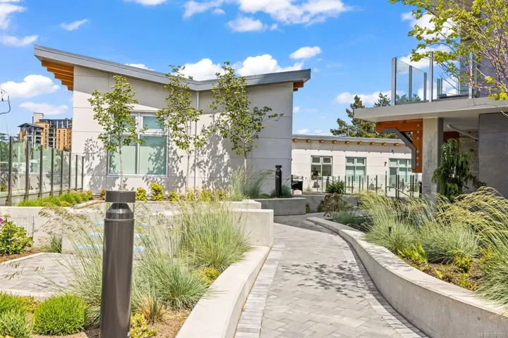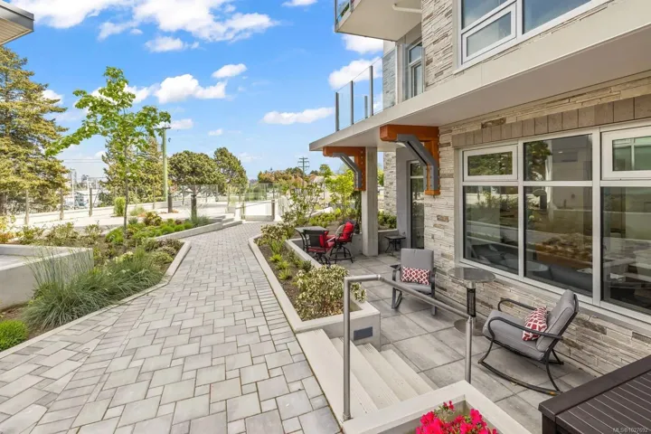 This ground-floor 1BR corner unit features 9′ ceilings, hardwood floors, and premium Fisher & Paykel appliances including a gas range. The northeast corner position offers a private exterior entrance and a generous patio perfect for morning coffee. Built to last with steel & concrete construction and a metal roof, the unit also features a heat recovery system for year-round comfort — heat and hot water are included in strata fees. Secure underground parking, bike and kayak storage, and pet-friendly bylaws that welcome large breeds round out an impressive package. The unit is currently generating above-market rental income as an executive rental with professional management already in place. All furnishings are negotiable. Steps to West Bay Marina, Saxe Point Park, and the Esquimalt waterfront walkway