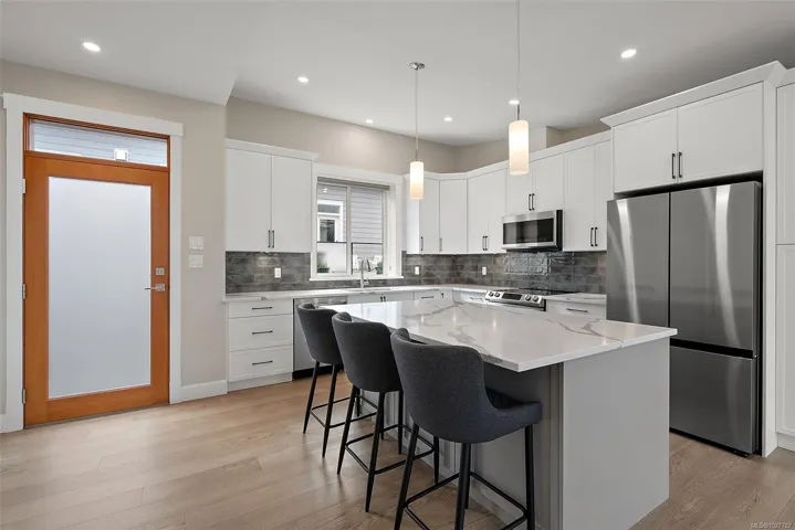 Welcome to The Tides at Cowichan Bay, ideally located just a short stroll from the Bay’s charming shops, restaurants, and local services, and only a five-minute drive to Great Greens Farm Market and Valleyview Centre for everyday amenities. This thoughtfully designed home features quartz countertops, engineered oak flooring, custom blinds, on-demand hot water, air conditioning, and a cozy gas fireplace, combining comfort with modern finishes. This two-bedroom, two-bathroom rancher offers easy main-floor living with beautiful ocean views. Enjoy convenient access from the garage into the mudroom and laundry area, or enter through the front door into the bright open-concept kitchen, dining, and living space. Sliding doors from the living room lead to a full-width deck, perfect for relaxing and taking in the stunning views over Cowichan Bay. Come experience The Tides at Cowichan Bay and enjoy the lifestyle this vibrant seaside community has to offer.