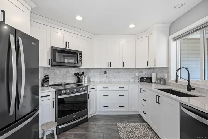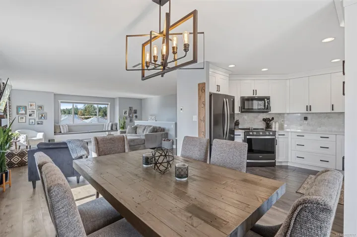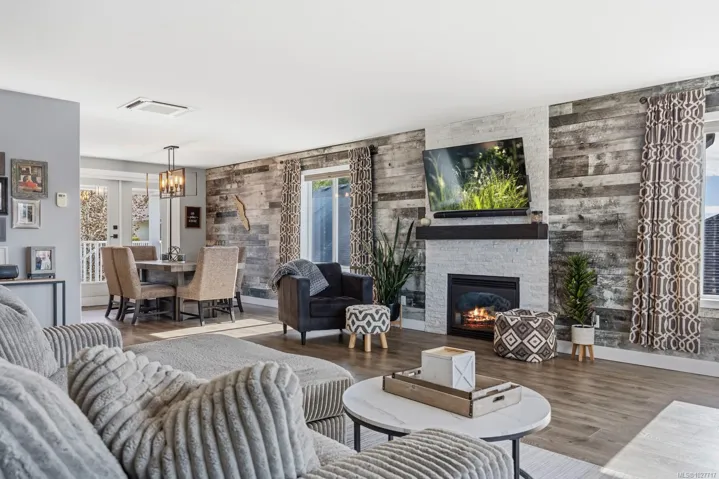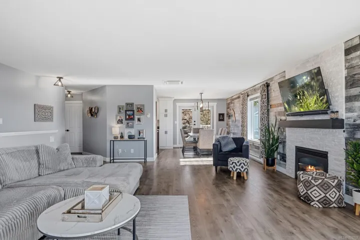 Welcome to 826 Grumman Place, a beautifully updated Comox home with a thoughtful layout, upgrades, and the flexibility of a two bedroom legal suite. The main living area is open and inviting, with large windows framing views of Beaufort Mountains and a strong connection outdoors. At the heart of the home, the kitchen features quartz countertops and great storage, opening to the dining area and sitting room where a cozy gas fireplace creates a welcoming place to gather. French doors lead to a spacious covered deck, perfect for entertaining or enjoying a quiet evening. Four bedrooms and three bathrooms provide room to settle in, including a primary suite with walk in closet and ensuite. A bright two bedroom secondary space with its own entrance is ideal for extended family or mortgage helping income. Numerous improvements and efficient mini split heating and cooling add everyday comfort in a friendly Comox neighbourhood where mountain sunsets and calm streets are part of daily life.